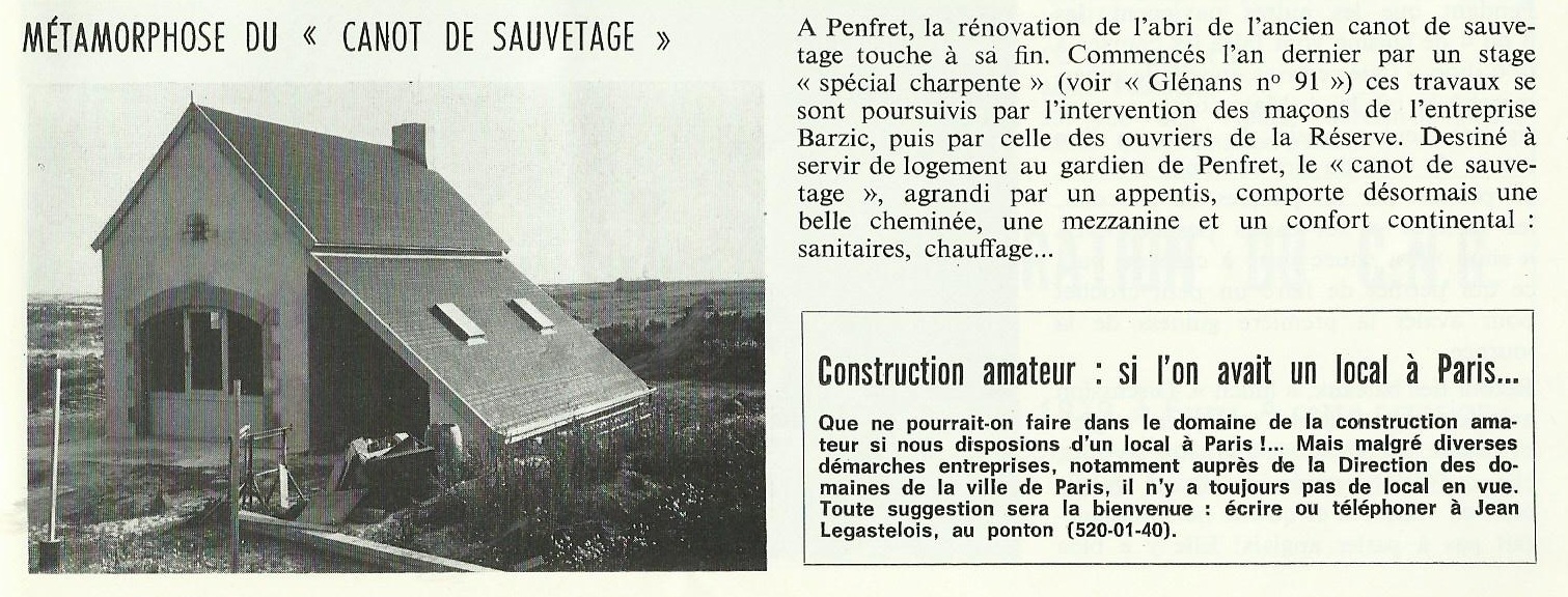 Métamorphose du Canot de sauvetage, Penfret, Glénans N° 95, 1978, p. 55Immatriculation