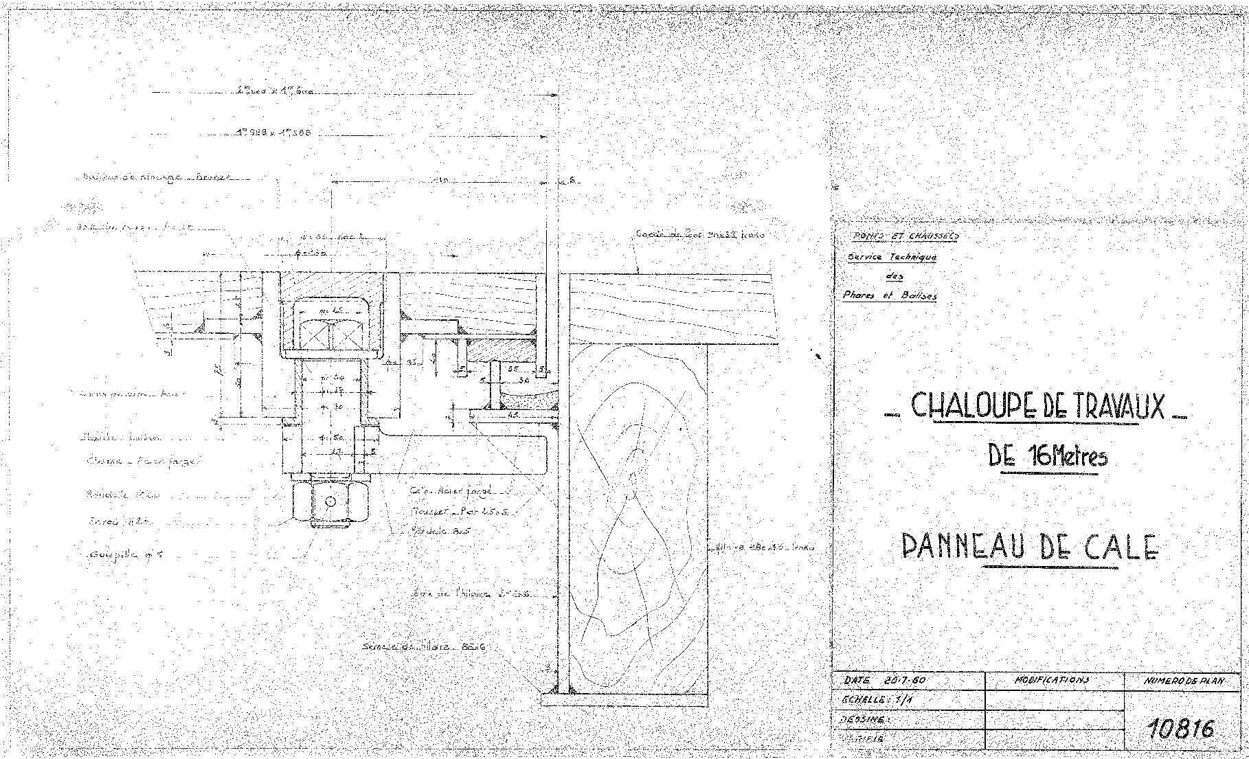 Plan de panneau de cale. Chaloupe de travaux de 16mImmatriculation