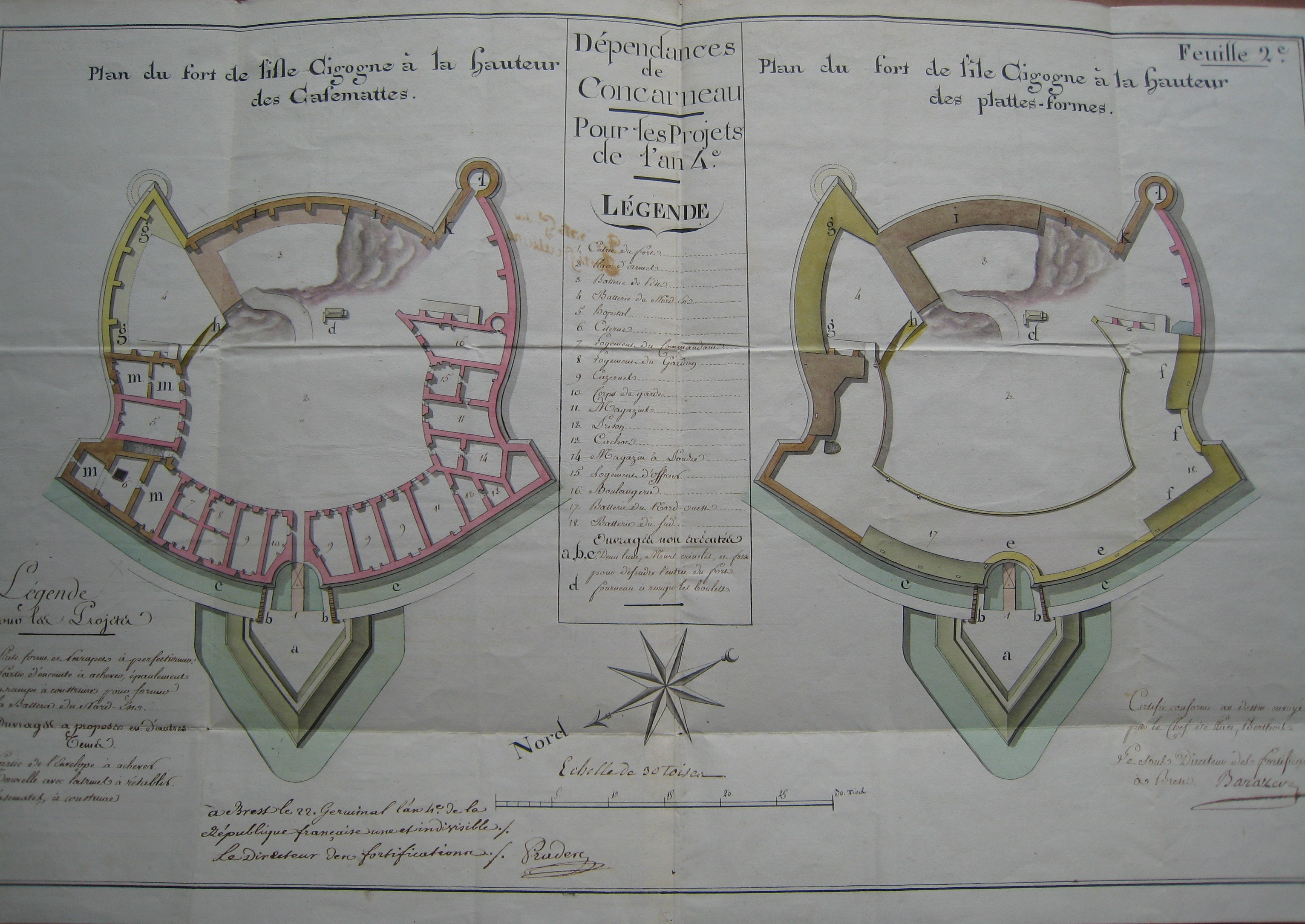 Plan du Fort, fait à Brest le 22 Germinal l'an IX de la République Française une et indivisible. F. Pradere. Contresigné par le Sous-Directeur des Fortifications à Brest, Barazer.Immatriculation