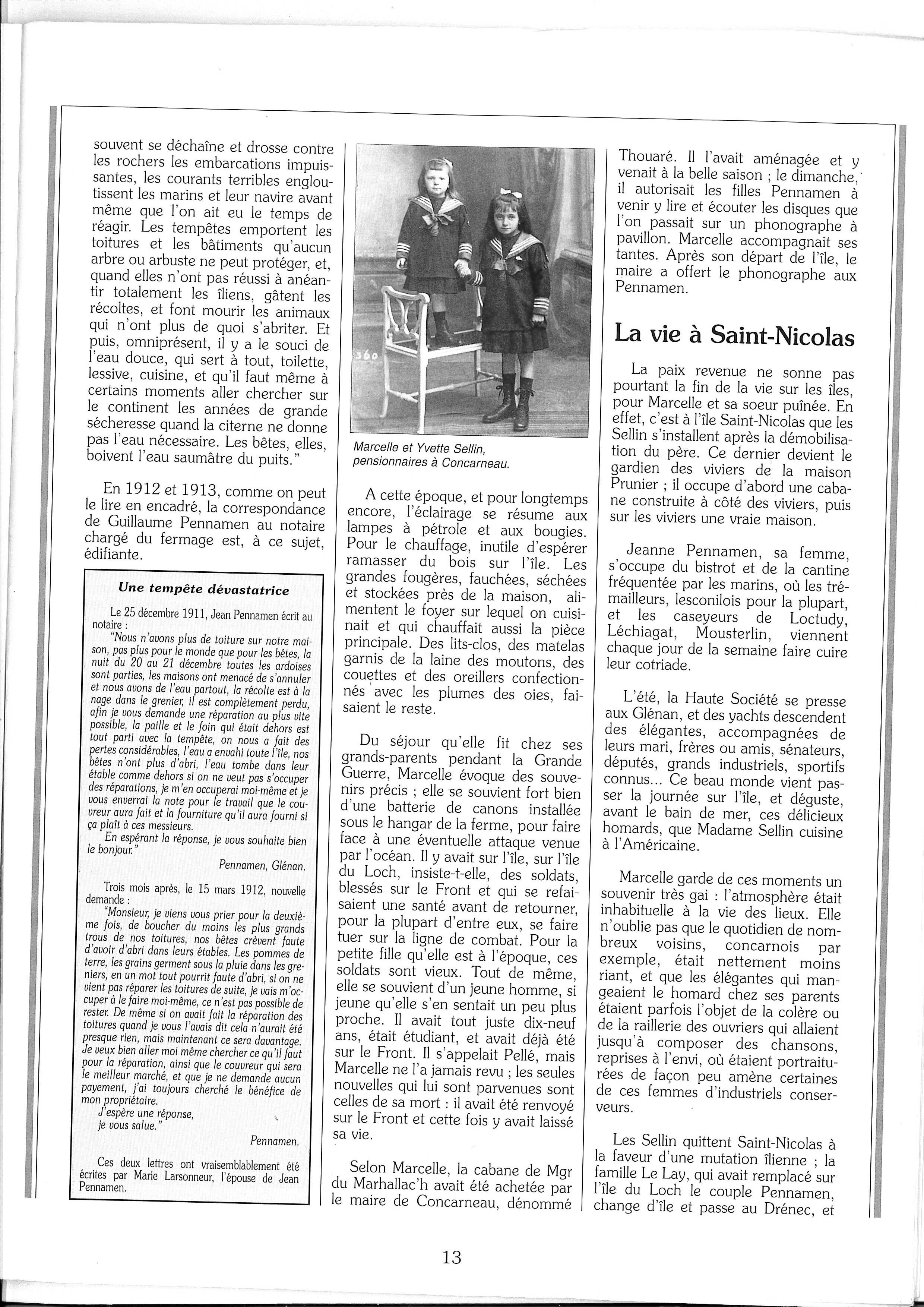 Quatre générations aux Glénan : Les souvenirs de Marcelle Guinvarch de l'île Tudy, revue Cap Caval, n°23, août 1998Immatriculation