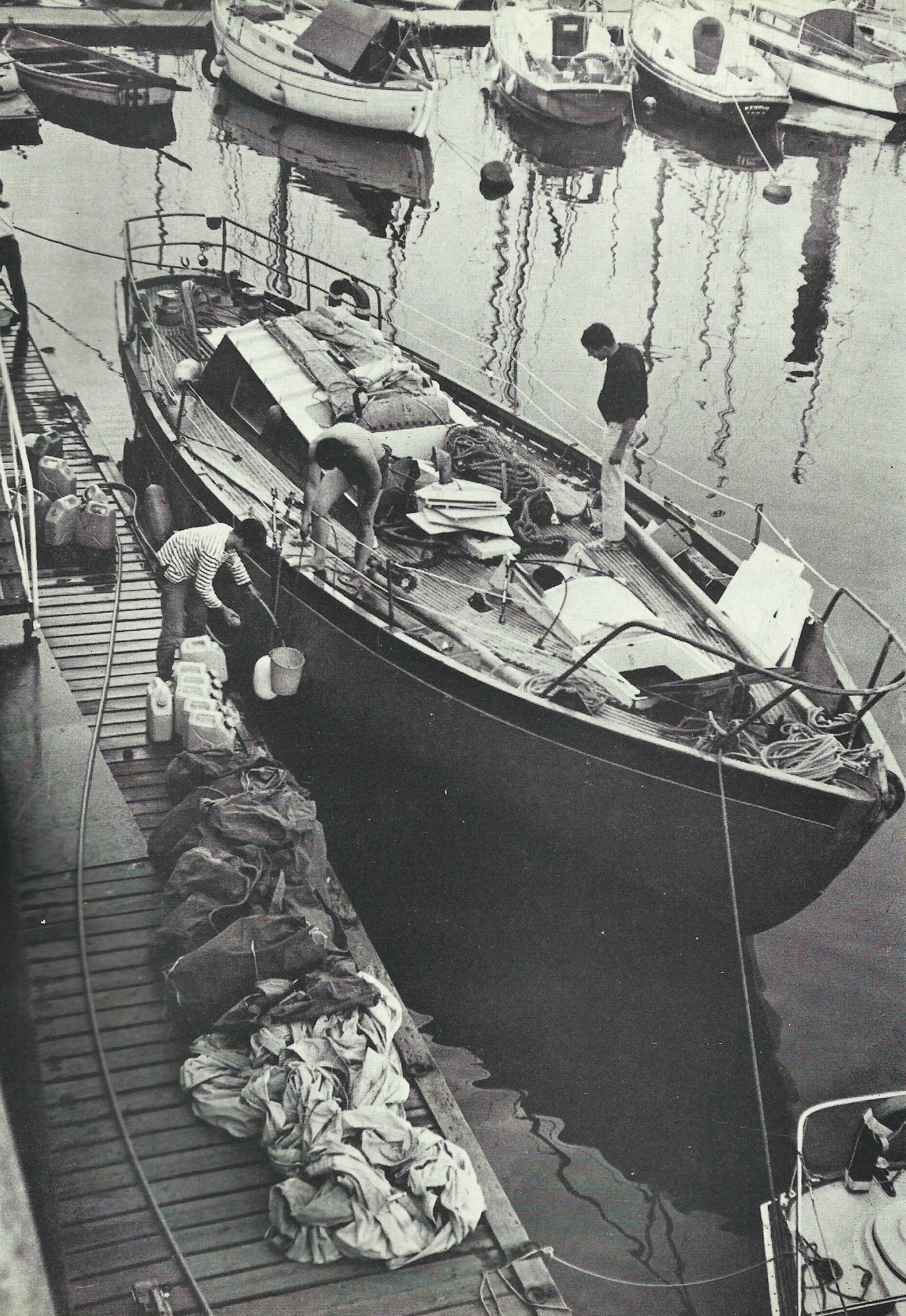 Sereine à quai, démâtée- Glénans N°59 - 1969Immatriculation
