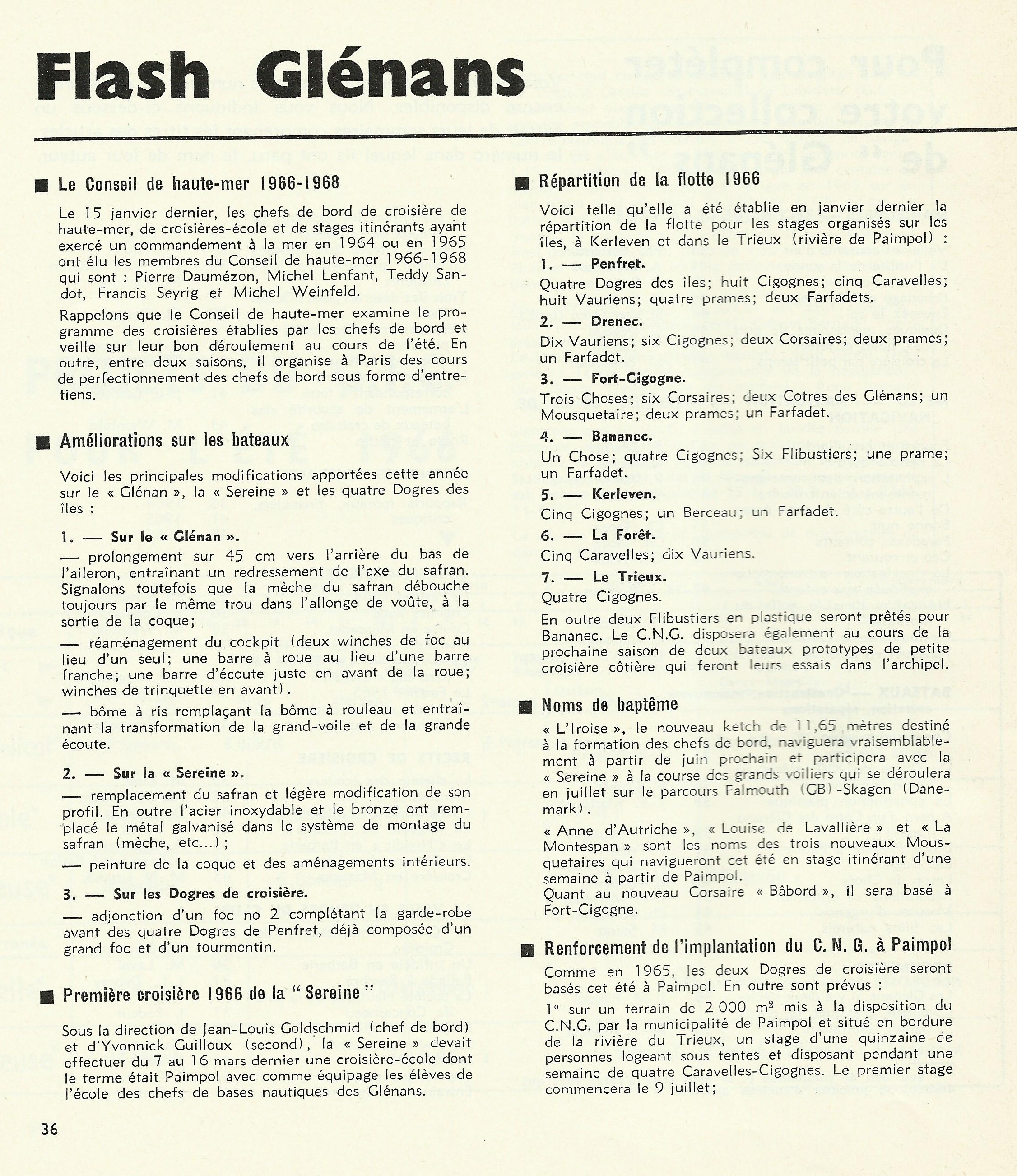 Flotte de 1966- Glénans N° 46, 1966 p. 36Immatriculation