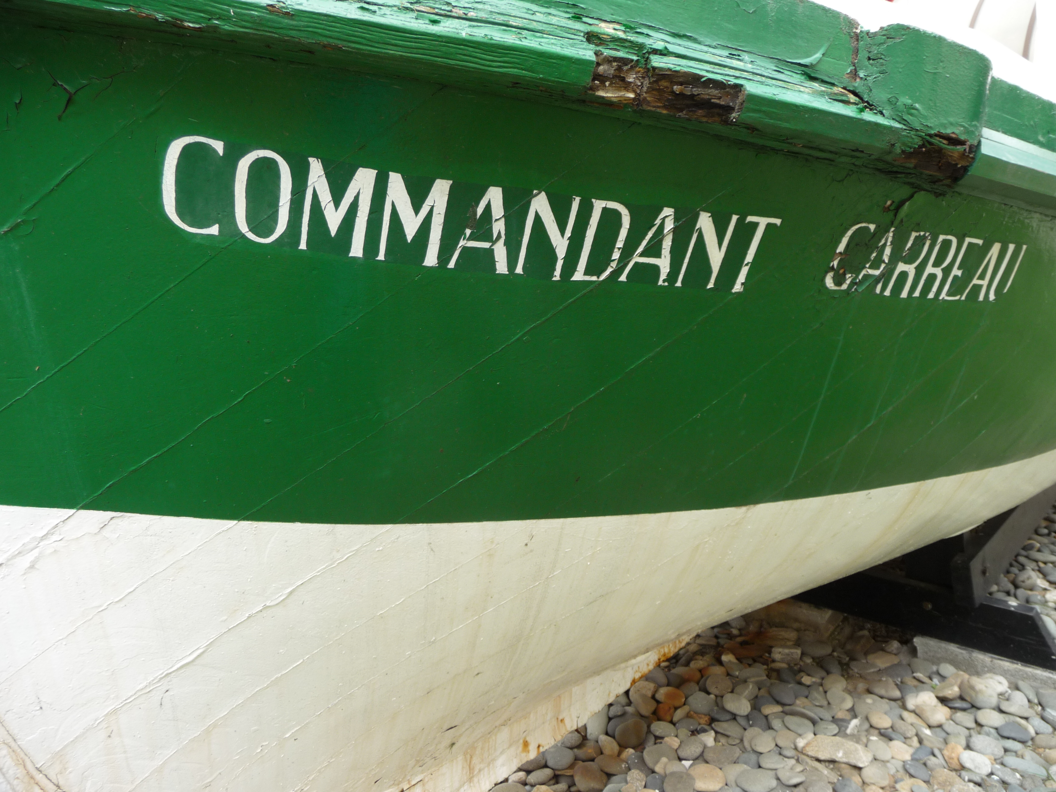 Détail coque à double bordé croisé du Commandant Garreau, cour du Musée de la pêche de Concarneau, avril 2014Immatriculation