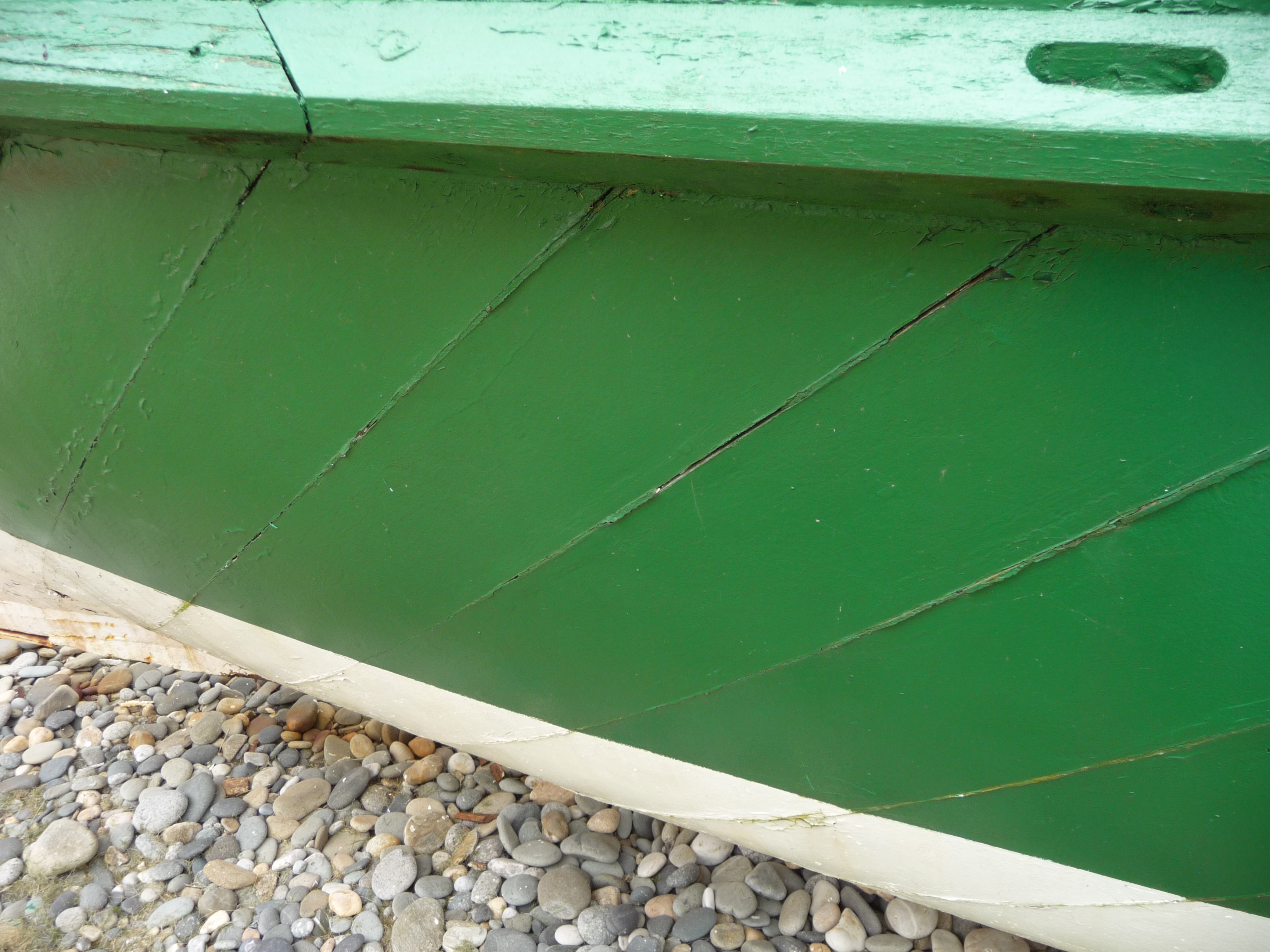Détail coutures des bordés collés et superposés à 45° du Commandant Garreau - Musée de la pêche de Concarneau, avril 2014Immatriculation
