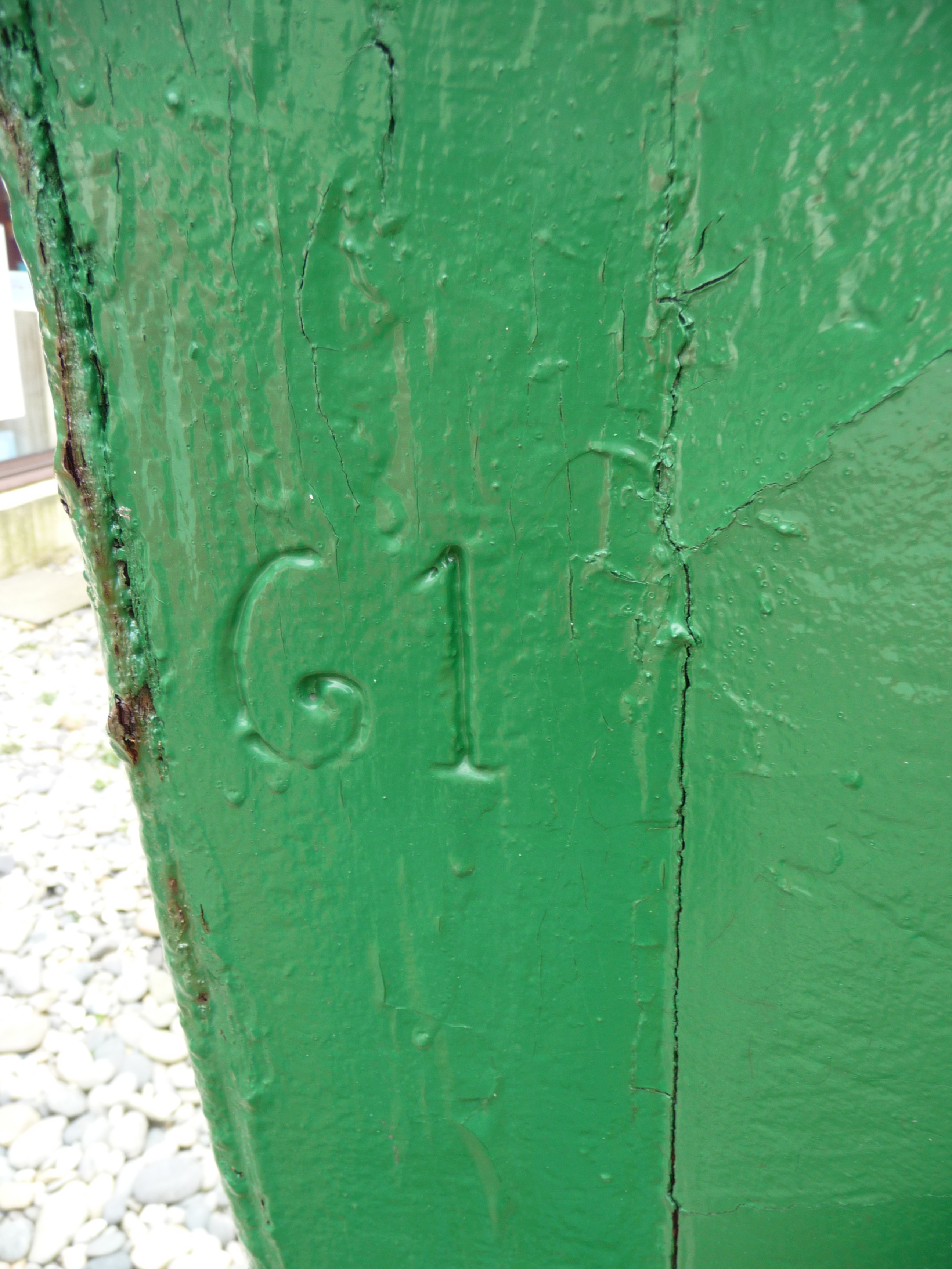 N° 61, marque gravée sur l'étrave du Commandant Garreau à sa construction - Musée de la pêche de Concarneau, avril 2014Immatriculation
