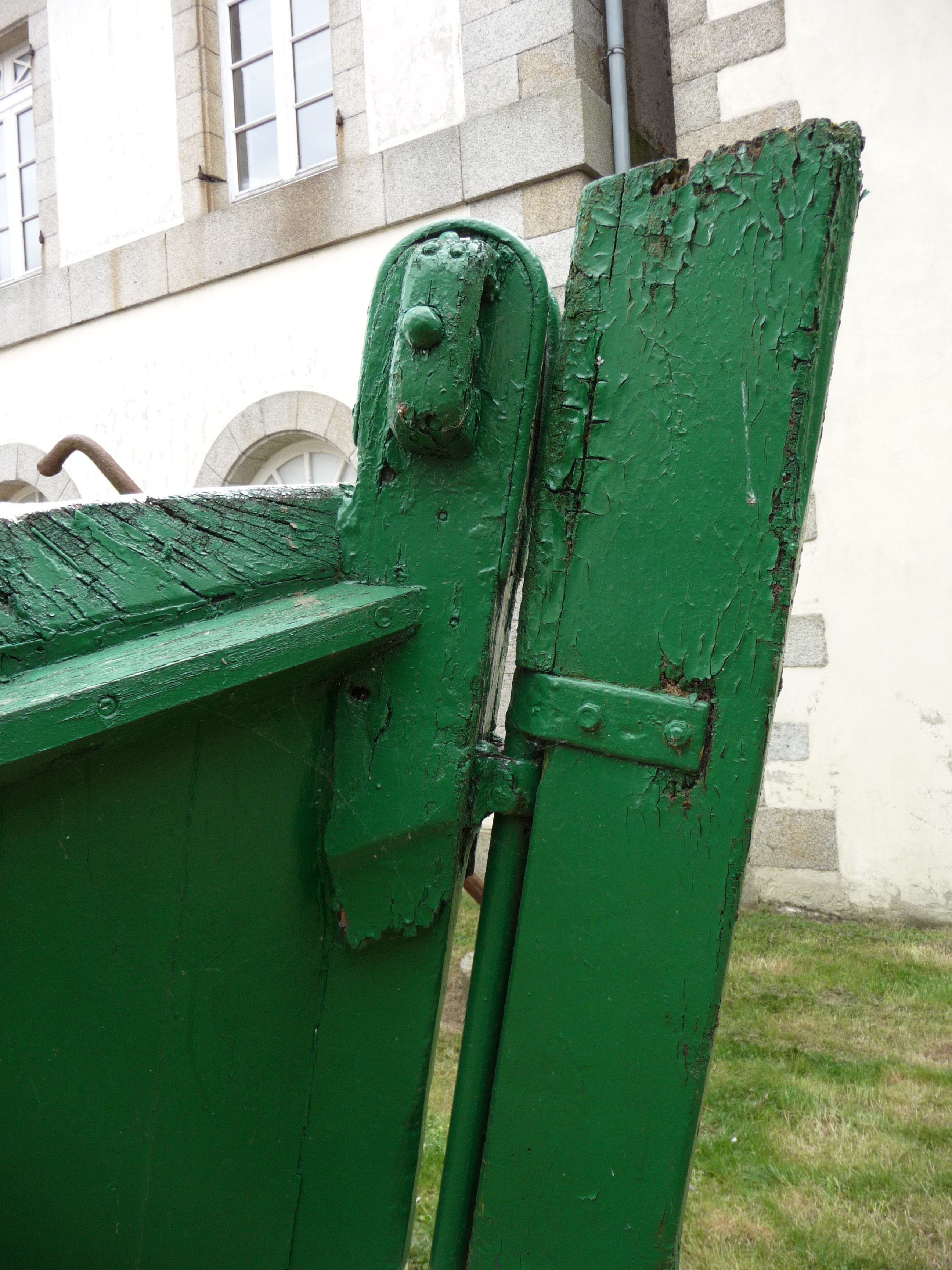 Vue babord du gouvernail, étambot et davier avec réa de poulie pour amarre de halage, Commandant Garreau, 2014Immatriculation