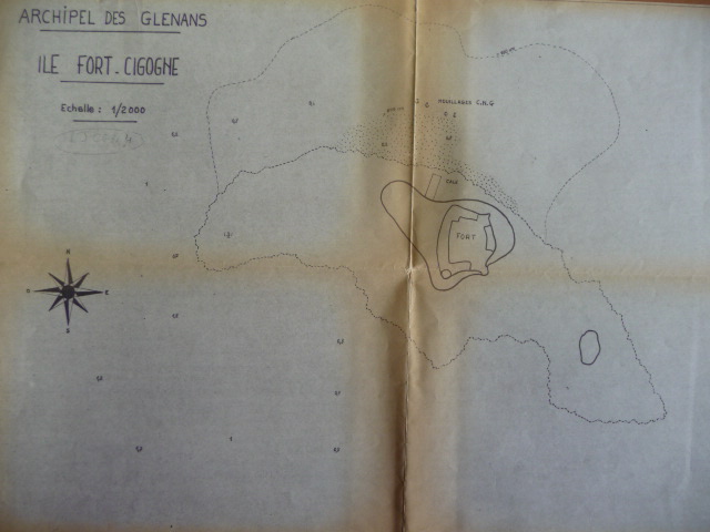 Plan vue générale îlot et fort Cigogne - Plan André Gomis - 1958Immatriculation