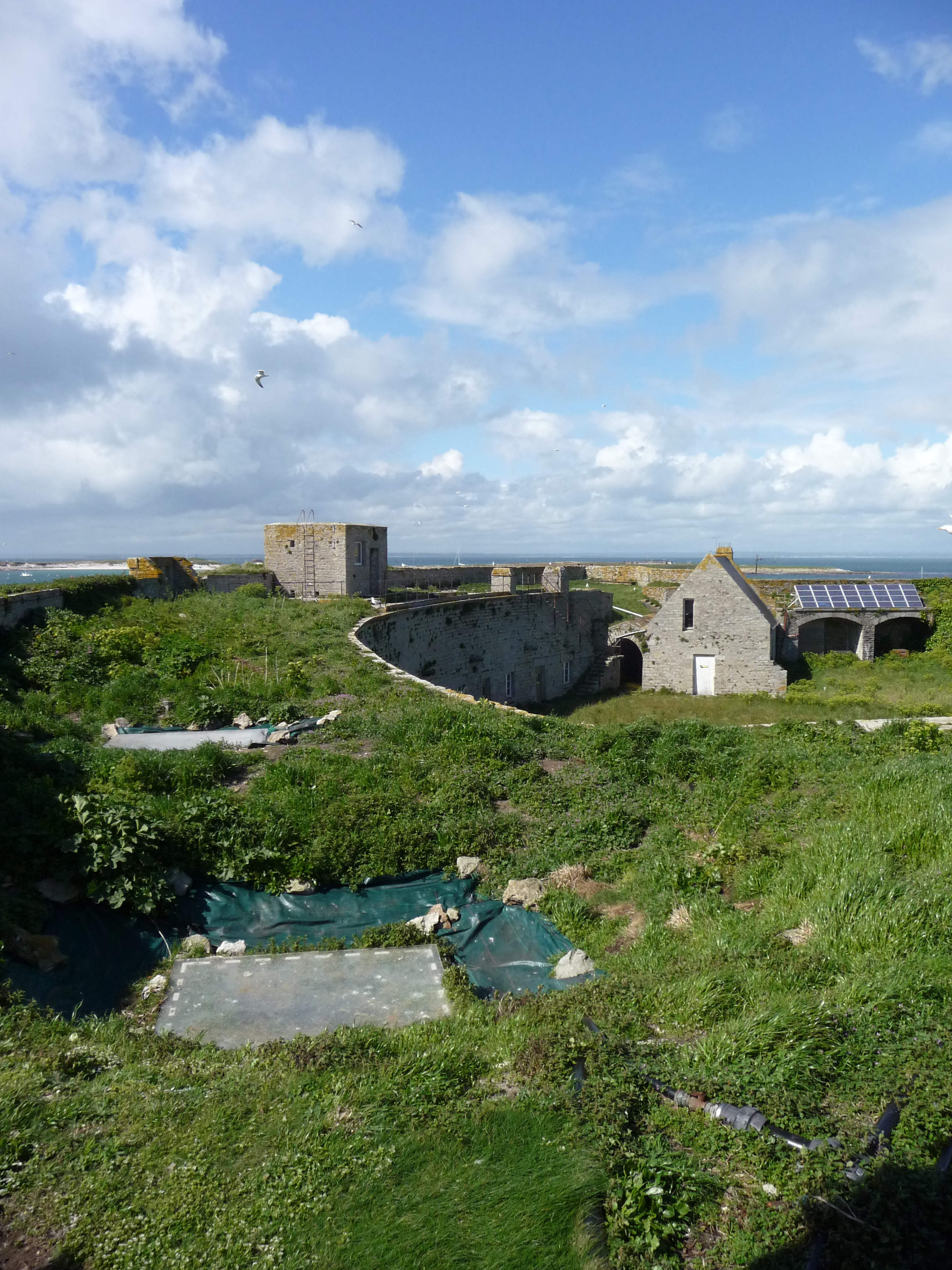 Rempart sud ouest - vue sur les puits de lumière des salles à manger - le quart - la maison des officiers - Cigogne avant ouverture -mai 2014Immatriculation