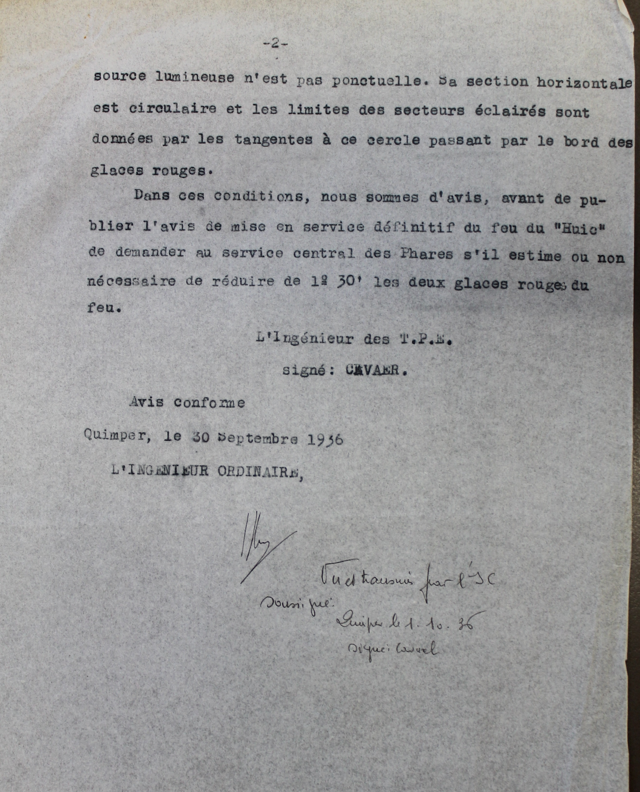 Décision Ministérielle du 14 mars 1935 - Construction d'un feu sur le rocher "Huic" dans l'archipel des GlénanImmatriculation