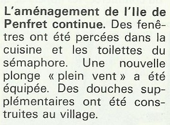 L'aménagement de l'ile de Penfret continue, Glénans N° 109, 1982, p. 58Immatriculation