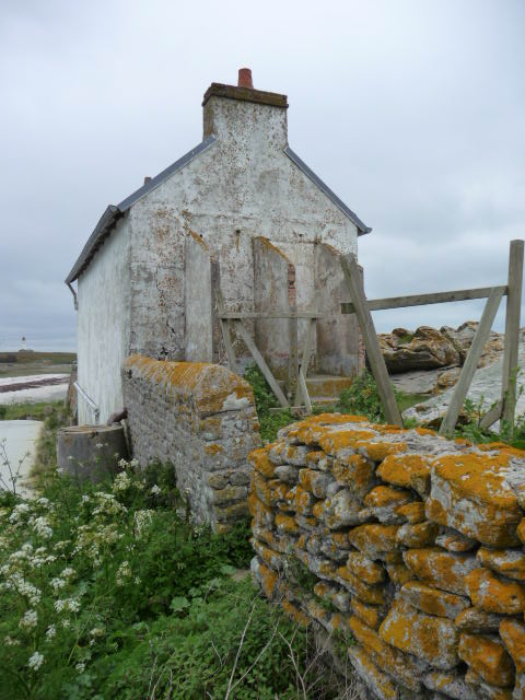 Vestiges des anciennes toilettes des guetteurs-sémaphoriques, pignon sud de la maison et muret, Penfret, juin 2014Immatriculation