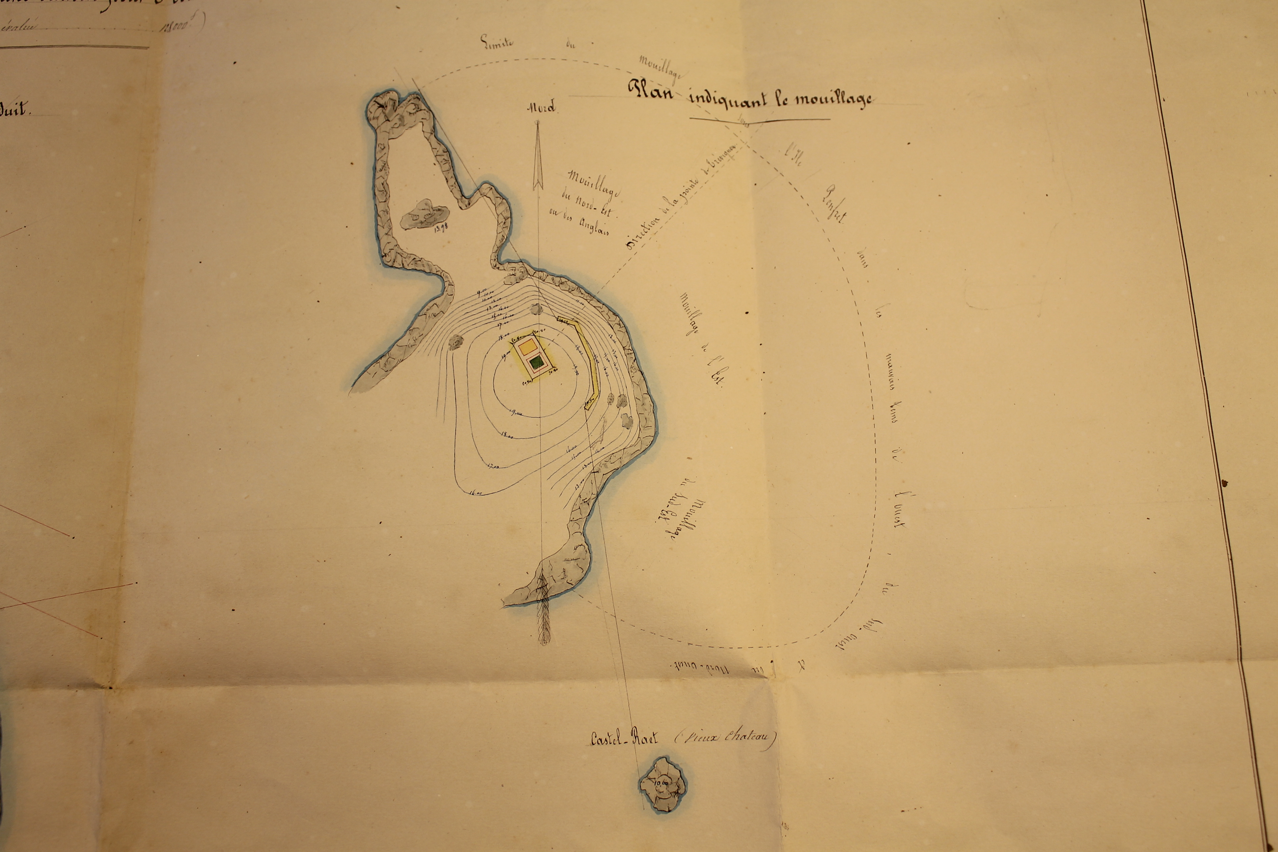 Construire à l'île Penfret une batterie pour 8 bouches à feu avec réduit, fait et dessiné par le capitaine du Génie en chef, Rousseau, à Concarneau, le 4 juin 1858Immatriculation