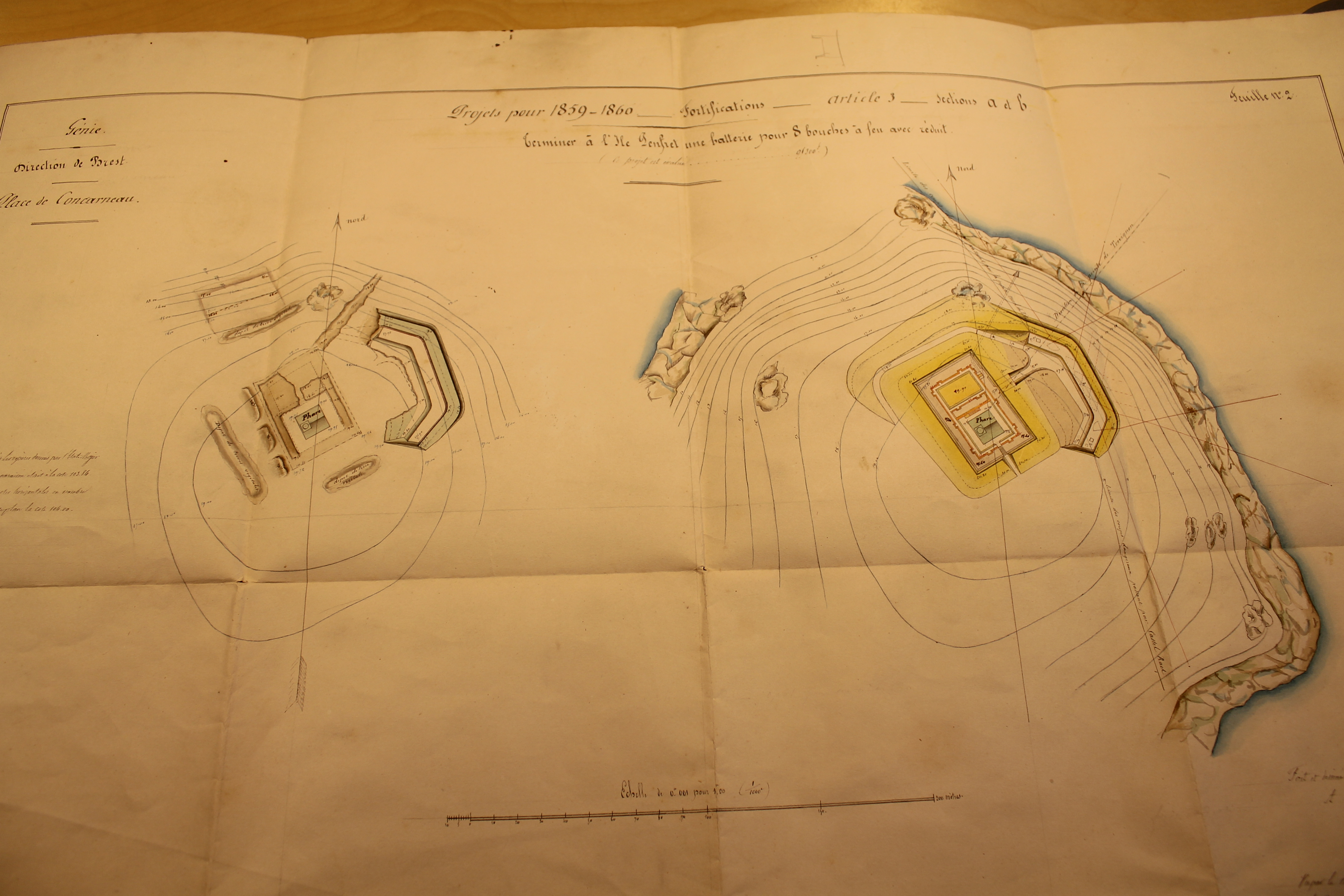 Terminer à l'île Penfret une batterie pour 8 bouches à feu avec réduit, signé Rousseau, chef du bataillon du génie en chef, 10 janvier 1859Immatriculation