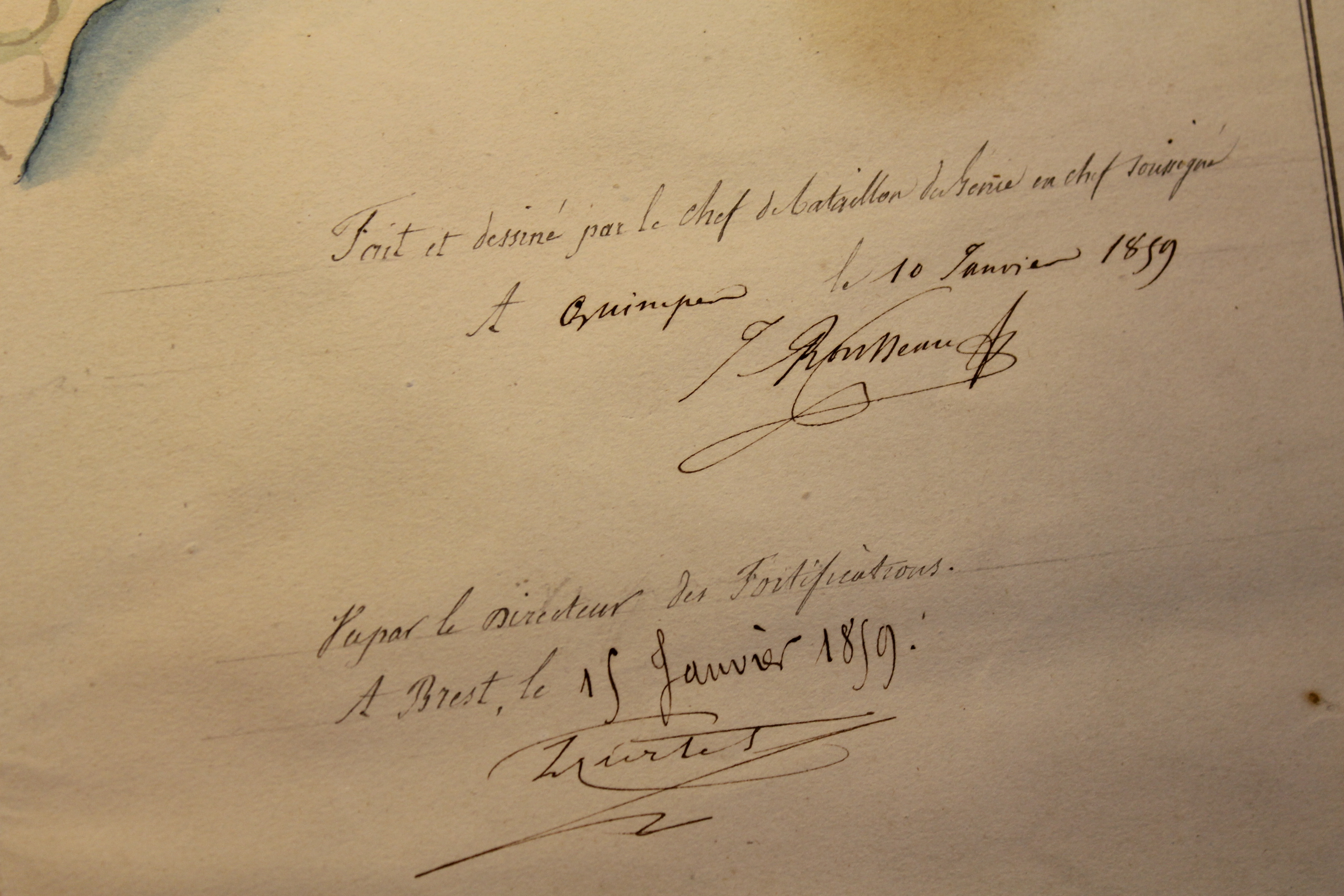 Terminer à l'île Penfret une batterie pour 8 bouches à feu avec réduit, signé Rousseau, chef du bataillon du génie en chef, 10 janvier 1859Immatriculation
