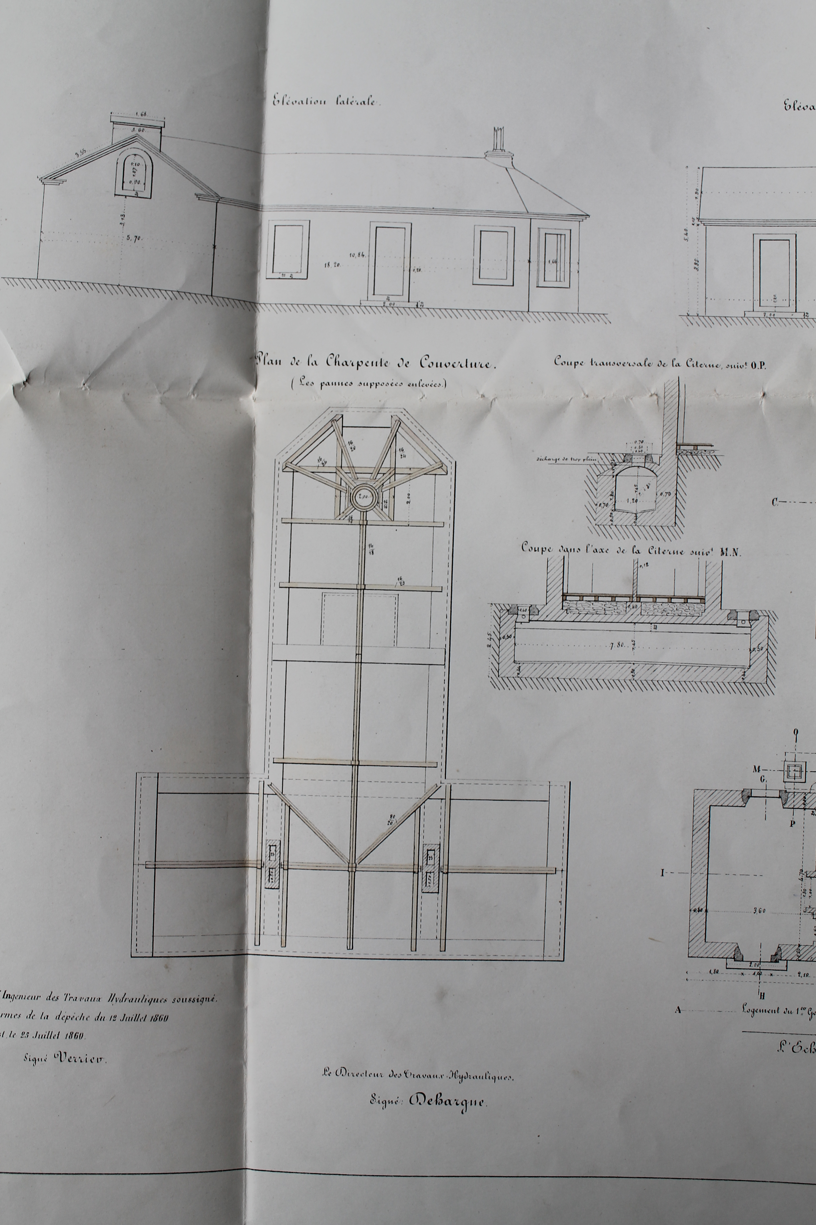 Projets de poste électro-sémaphoriques avec logement pour deux gardiens. Port de Brest, travaux hydrauliques et bâtiments civils. Signé par le directeur des travaux hydrauliques, Dehargne, Brest le 26 mai 1860Immatriculation