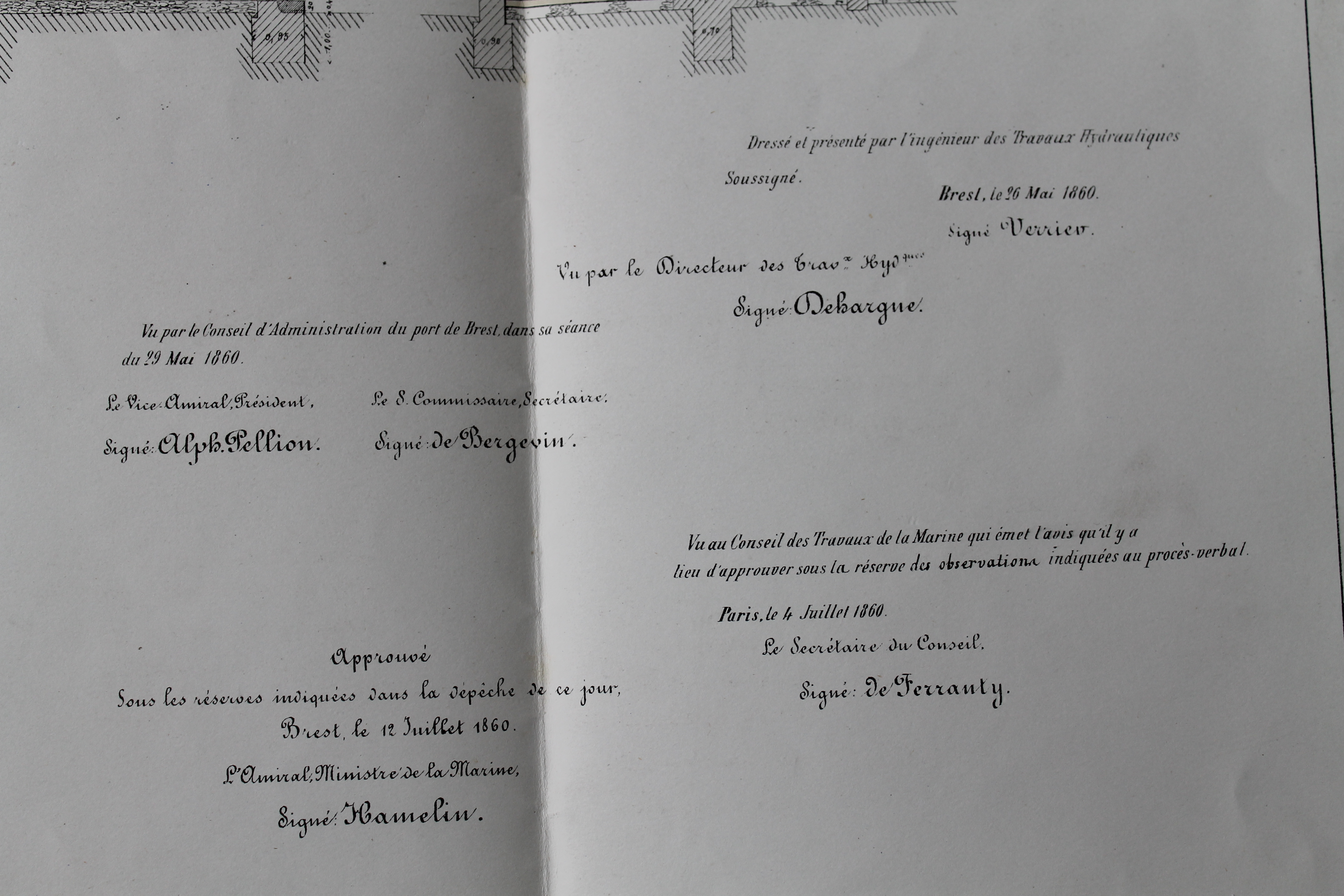 Projets de poste électro-sémaphoriques avec logement pour deux gardiens. Port de Brest, travaux hydrauliques et bâtiments civils. Signé par le directeur des travaux hydrauliques, Dehargne, Brest le 26 mai 1860Immatriculation
