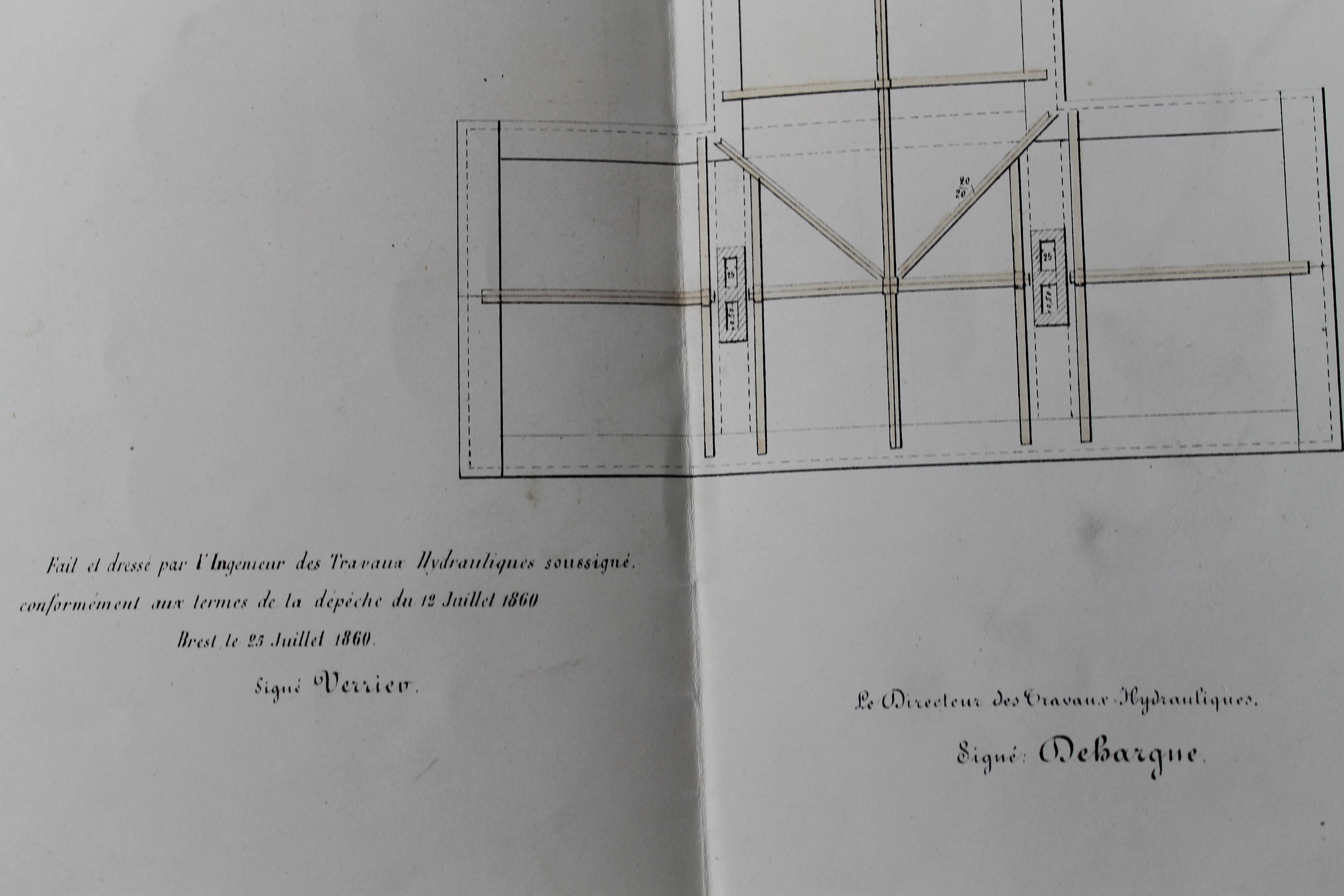 Projets de poste électro-sémaphoriques avec logement pour deux gardiens. Port de Brest, travaux hydrauliques et bâtiments civils. Signé par le directeur des travaux hydrauliques, Dehargne, Brest le 26 mai 1860Immatriculation