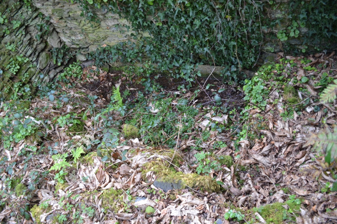 Kanndi de Kergoat (Le Tréhou) : le bassin visible sous la végétation.Immatriculation