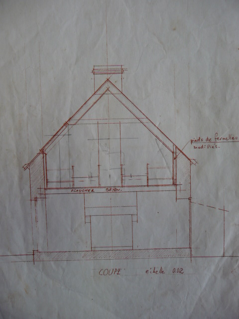 Coupe Penfret Village, salle à manger - charpente et plancher de l'étage -Ferme, auteur inconnu, s. d.Immatriculation