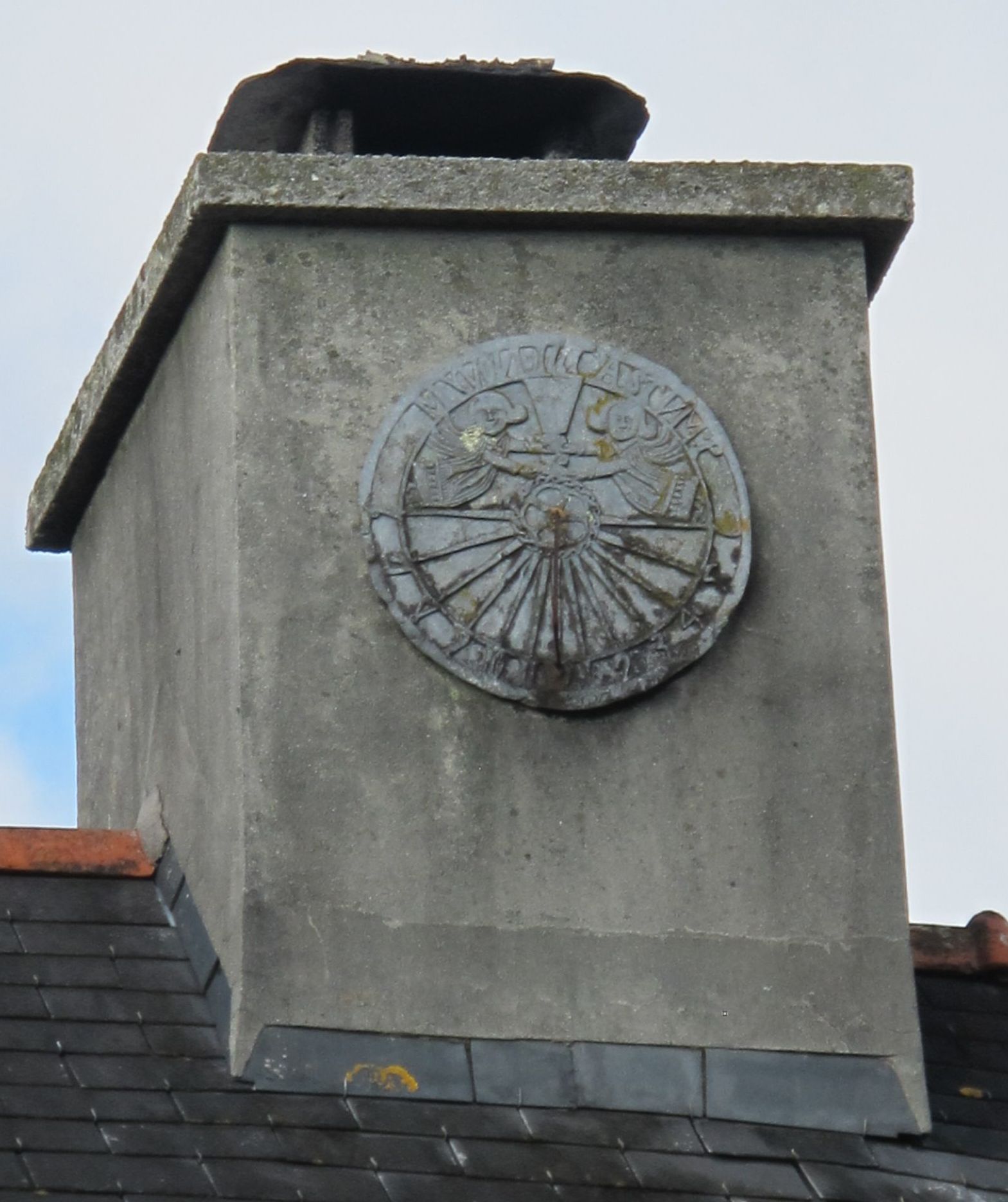 Lanton. Maison 17e siècle remaniée 20e siècle : ancien lieu de repos des moines situé entre les abbayes de Landévennec et du Relec. Détail du cadran solaireImmatriculation