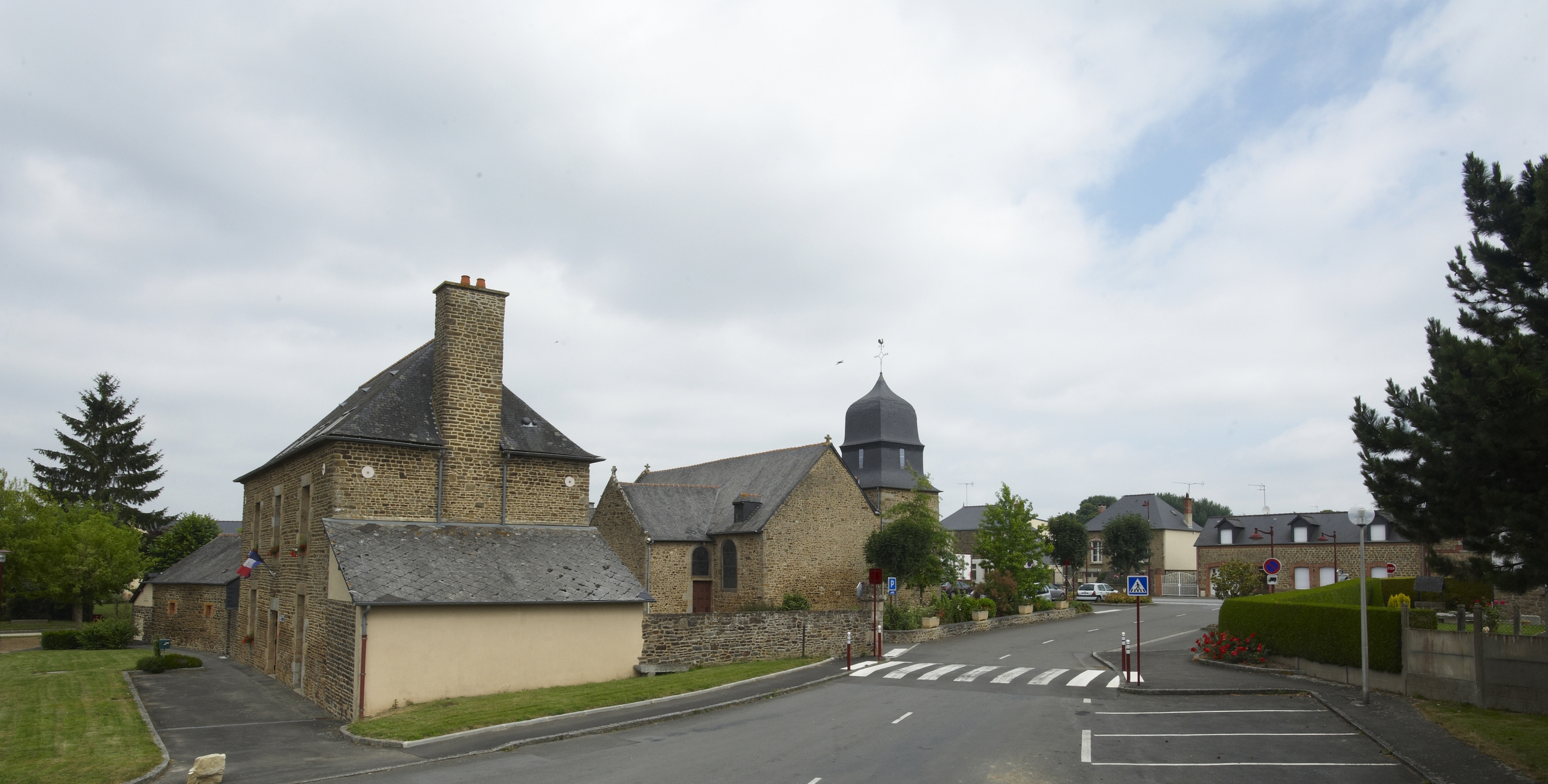 Bourg : le presbytère et l'église paroissiale (côté Sud-Est)Immatriculation