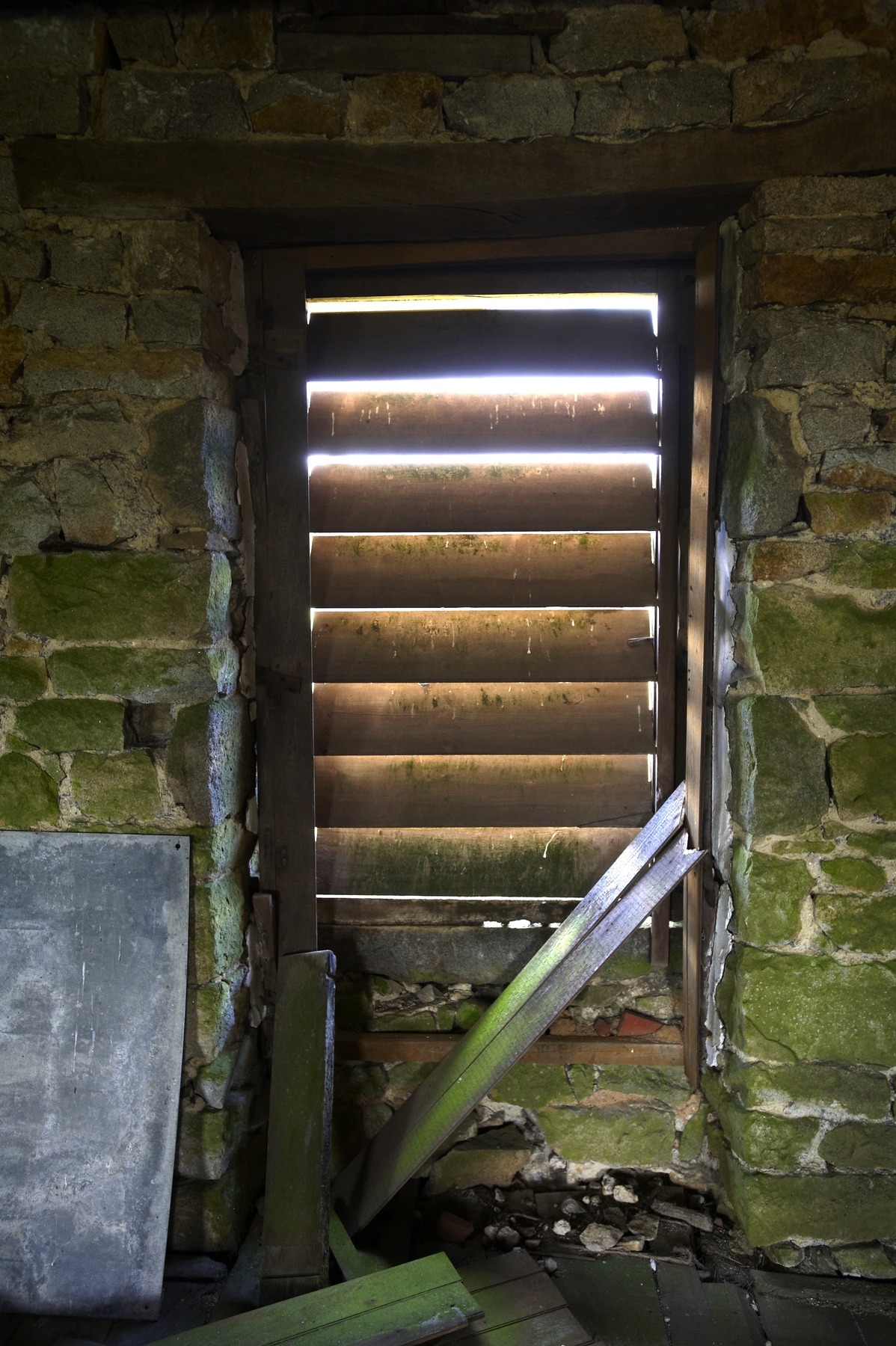 Détail d'une baie de l'étage : système de lattes en boisImmatriculation
