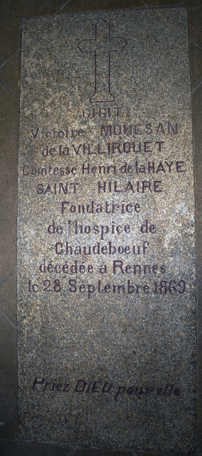 Chapelle de Chaudeboeuf, tombe de Victoire Mouessan de VillirouetImmatriculation