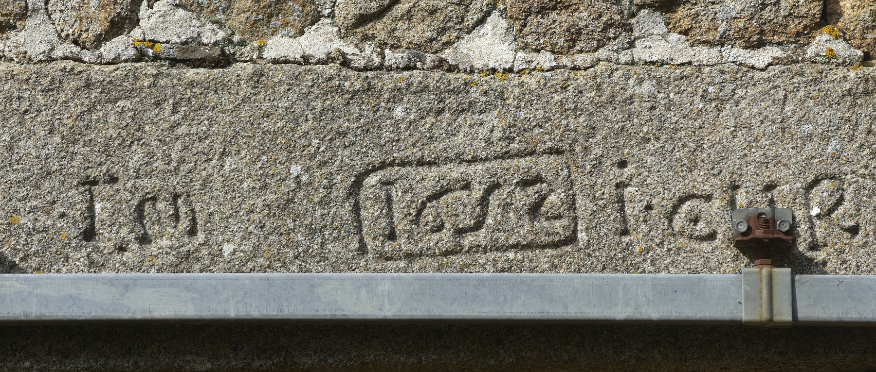La Riautais - Maison, détail de l'inscription et la date portée : 1652Immatriculation