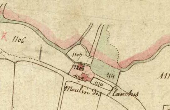 Le moulin des Planches sur le cadastre napoléonien du premier quart du 19e siècle.Immatriculation