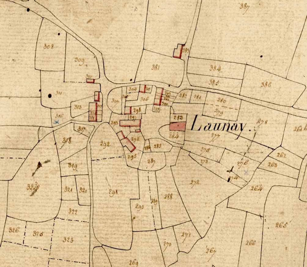 Launay sur le cadastre napoléonien du premier quart du 19e siècle.Immatriculation