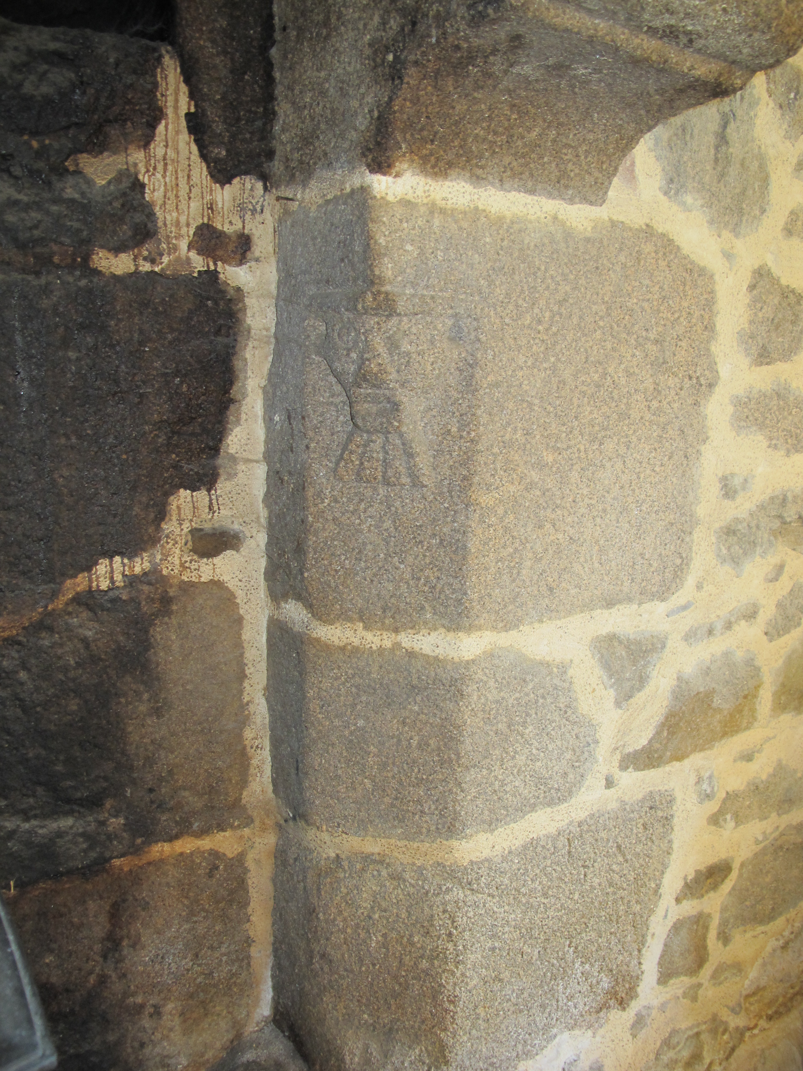 Maison, rue de Coglais : détail du visage sculpté sur le piédroit de la cheminéeImmatriculation