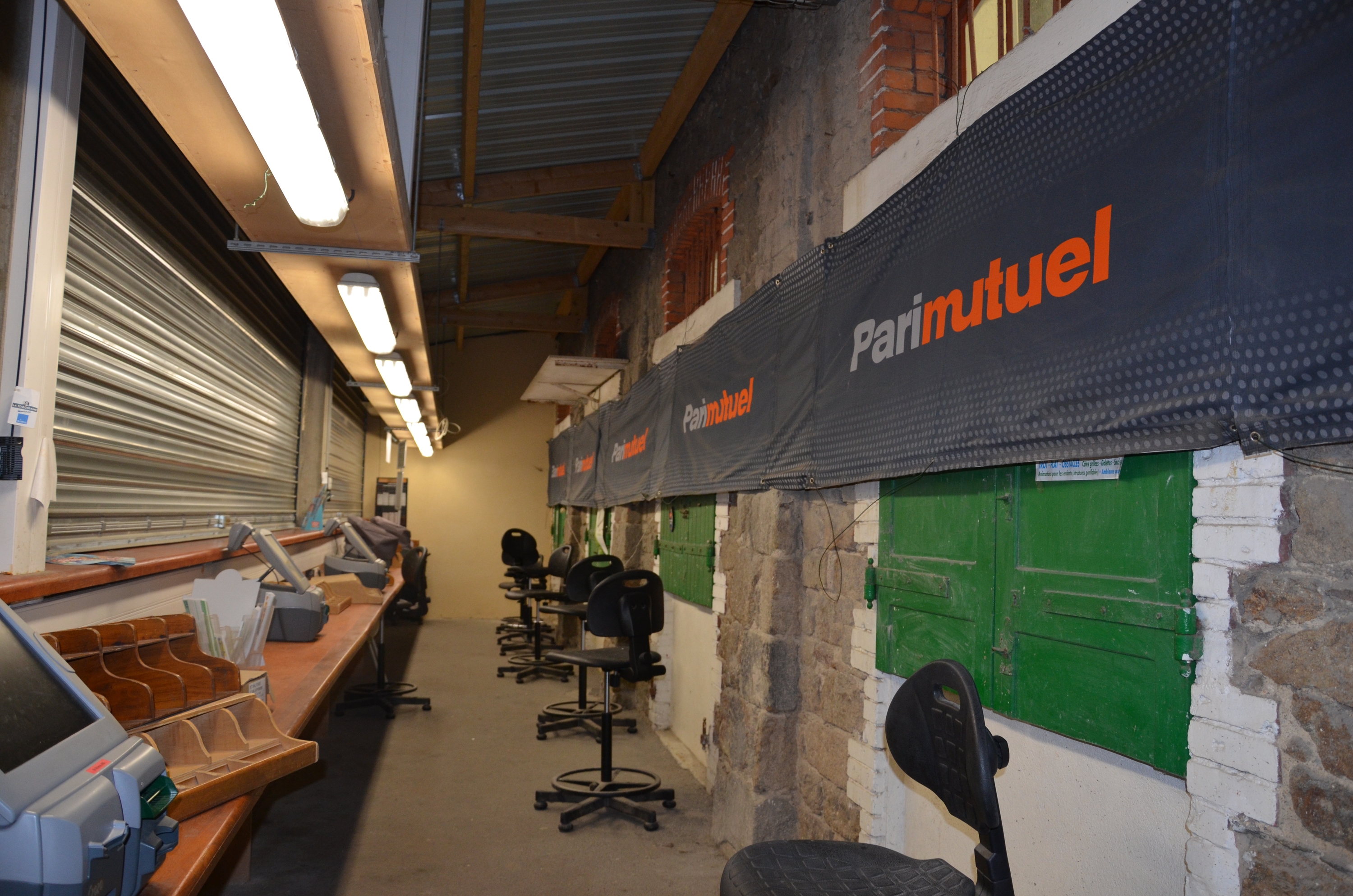 Guichets des paris mutuels, vue intérieure en 2014Immatriculation