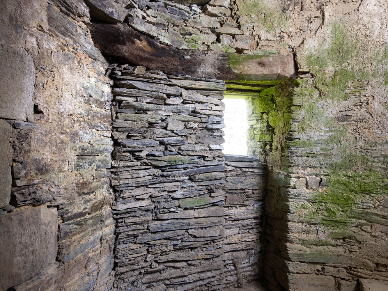 Manoir, tour d'escalier : porte bouchée donnant sur l'extérieur, au départ de l'escalier (état en 2014)Immatriculation