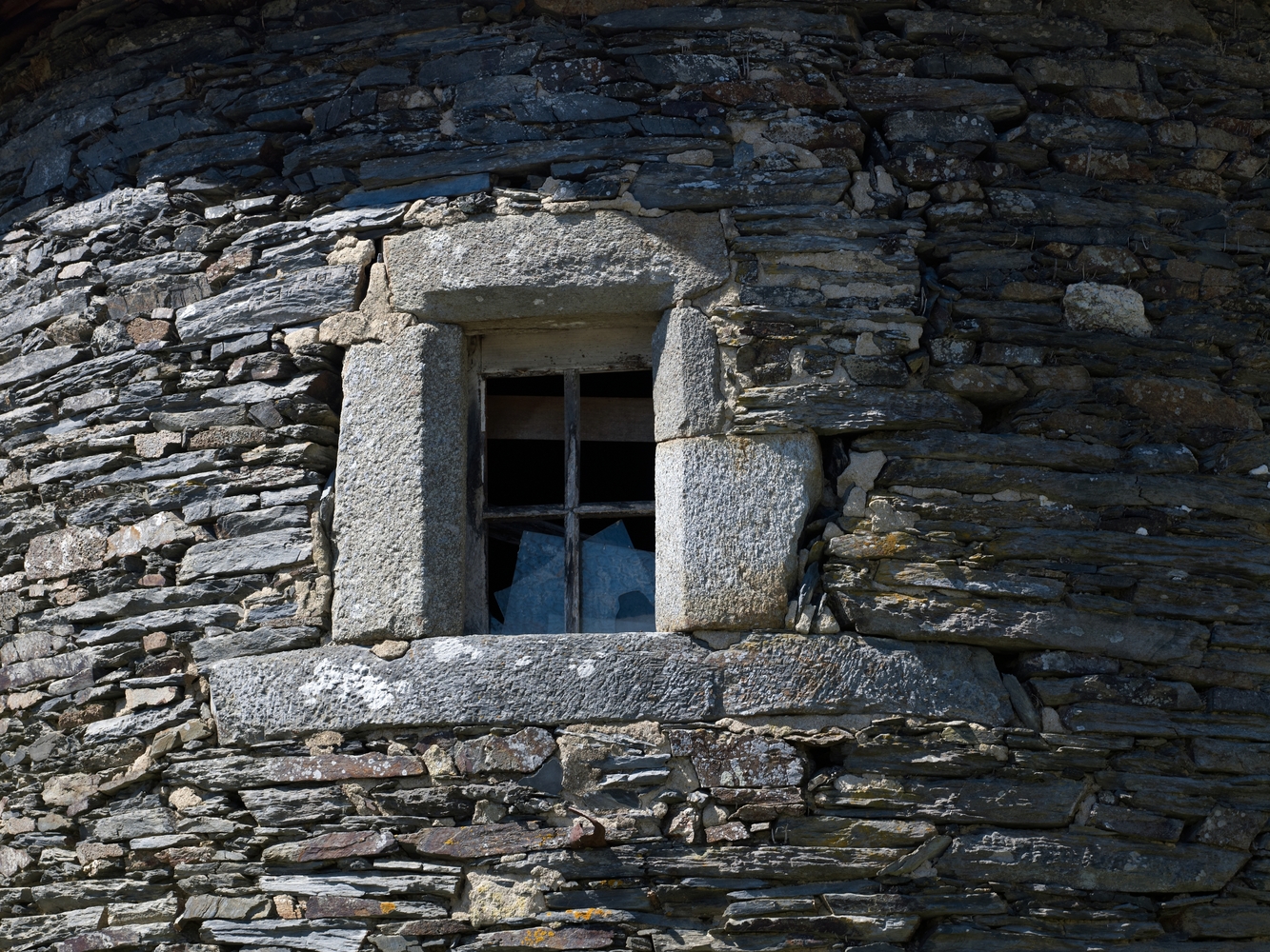 Manoir, tour d’escalier : fenêtre du premier étage ; elle comporte un coussiège (état en 2014)Immatriculation