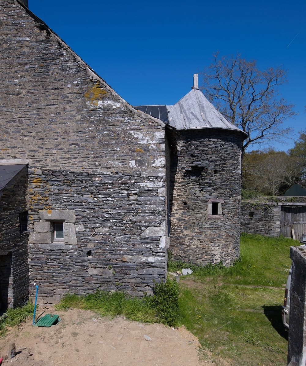 Manoir : logis vu du sud ; au premier plan, la fenêtre éclairant l’entrée actuelle ; au second plan, la tour d’escalier (état en 2014)Immatriculation
