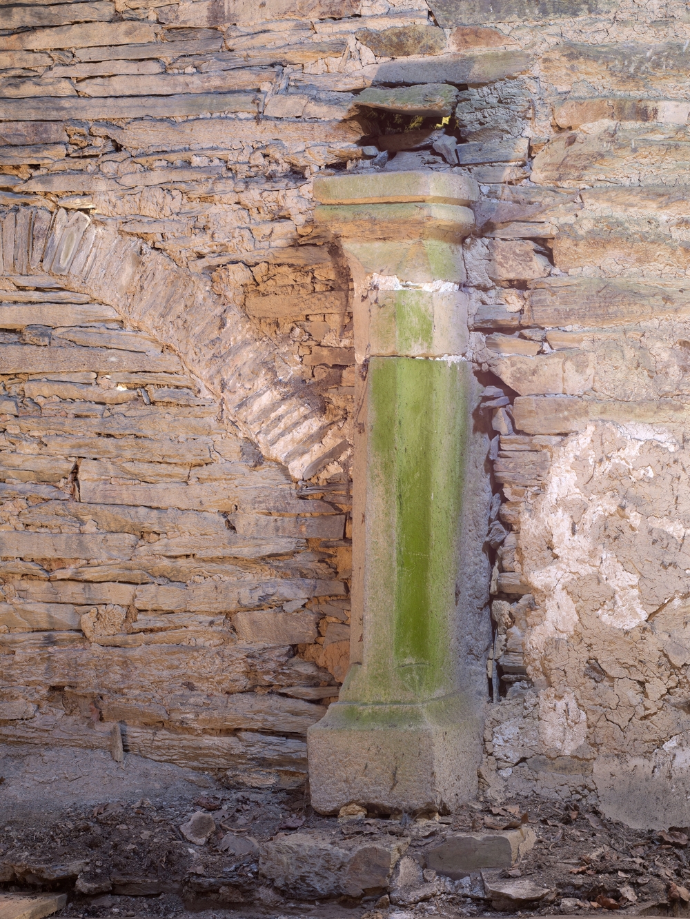 Manoir, premier étage, mur nord : piédroit droit de la cheminée (état en 2014)Immatriculation