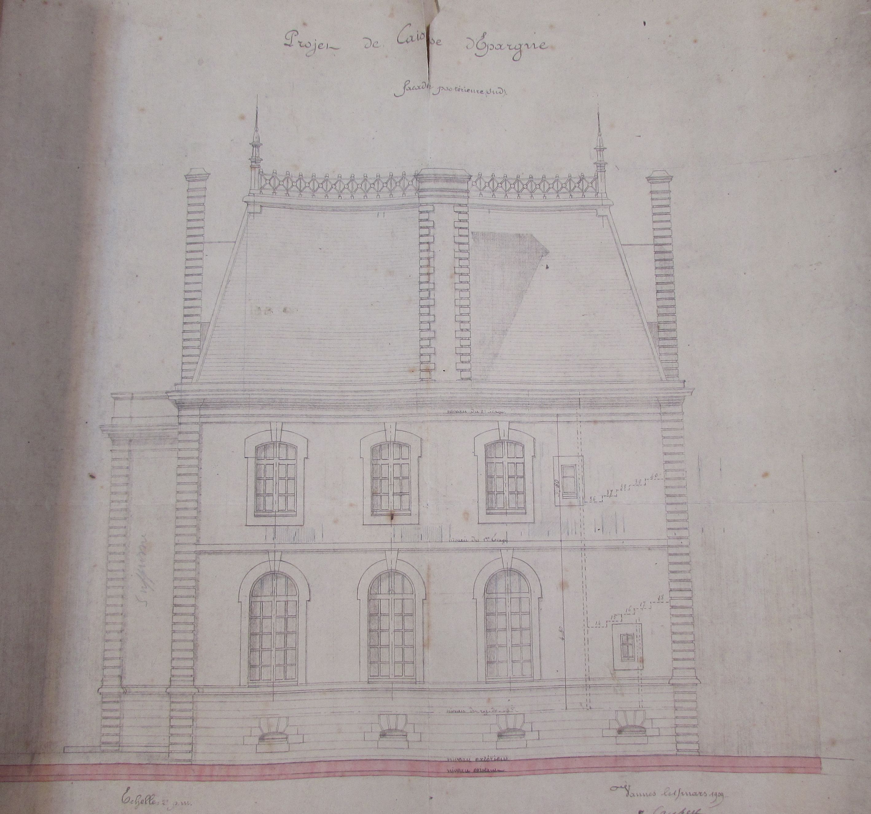 Elévation de la façade postérieure par J Caubert de Cléry, 1909. AD Morbihan 149 J 290.Immatriculation
