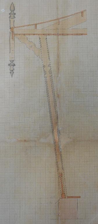 Croquis d'un kiosque pour musiciens : poteau (détail côté), signé Edmond Bassac, 14 juin 1889, AM Vannes 52 FiImmatriculation