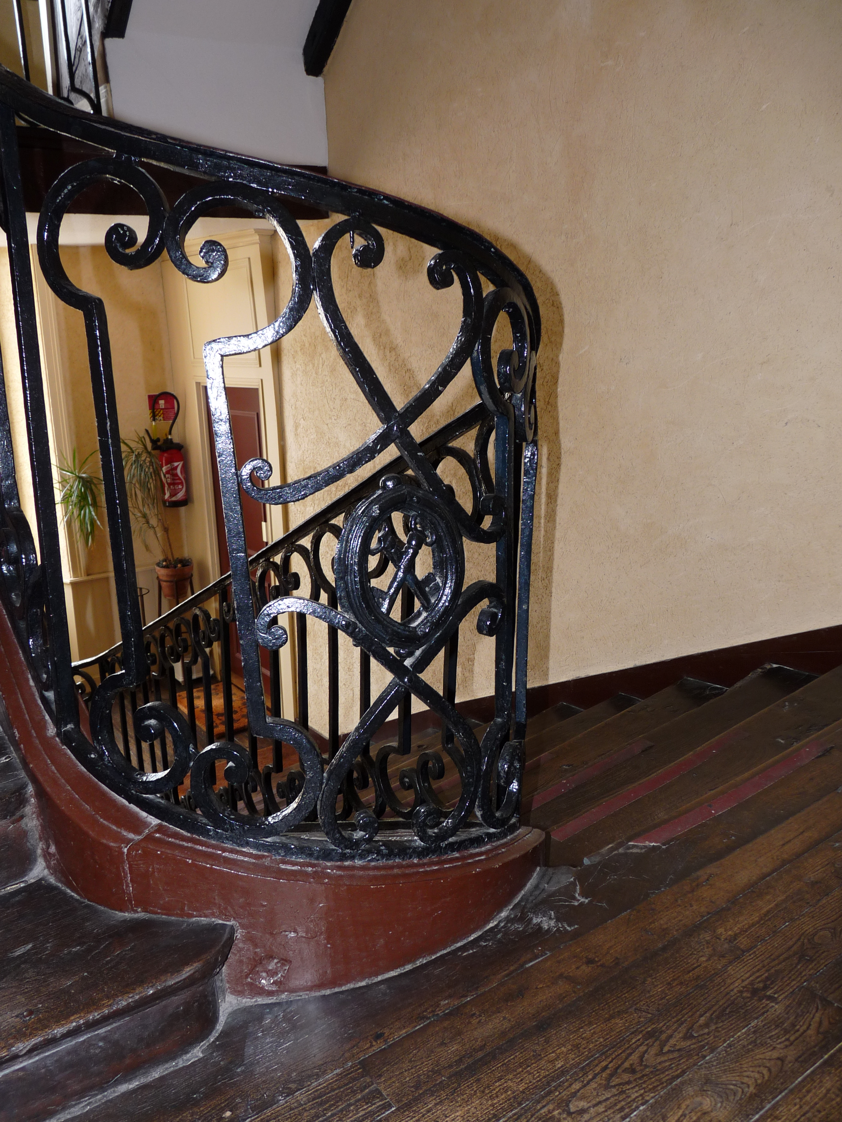 Escalier, rampe en fer forgé, détail, clefs de Saint-PierreImmatriculation