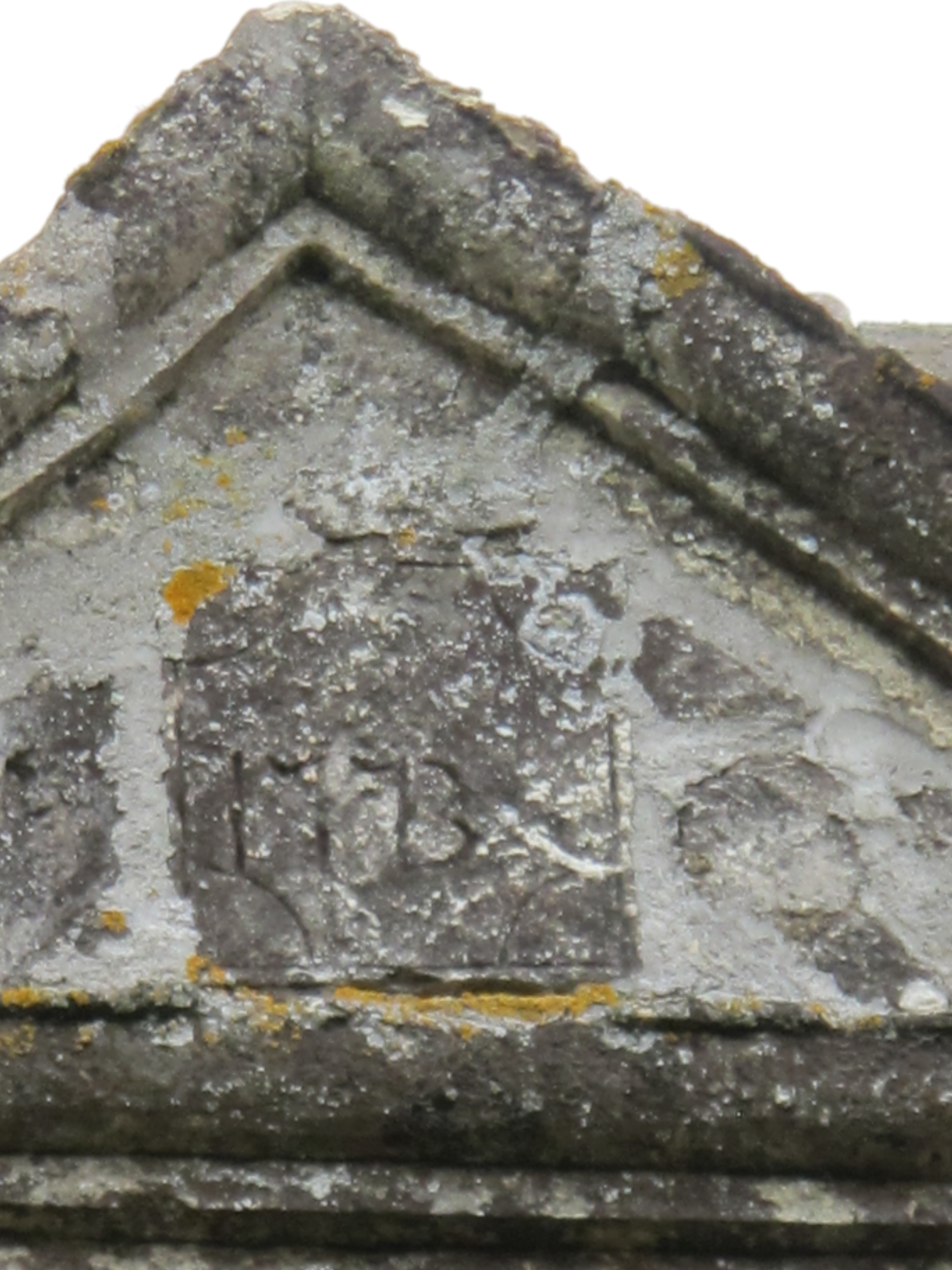 Manoir, élévation sud, partie est : la date 1773 gravée sur une pierre du fronton (état en 2014)Immatriculation
