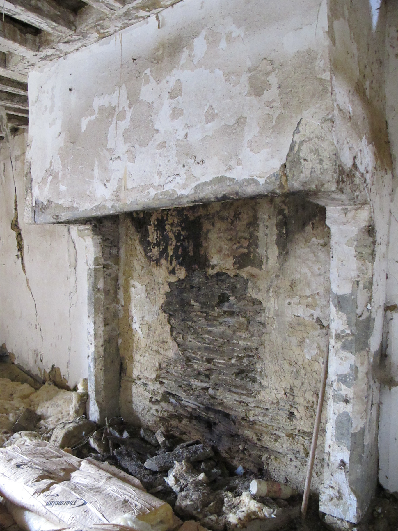 Manoir, étage, 3e pièce à l'est : la cheminée adossée en schiste du logis d'origine (état en 2014)Immatriculation