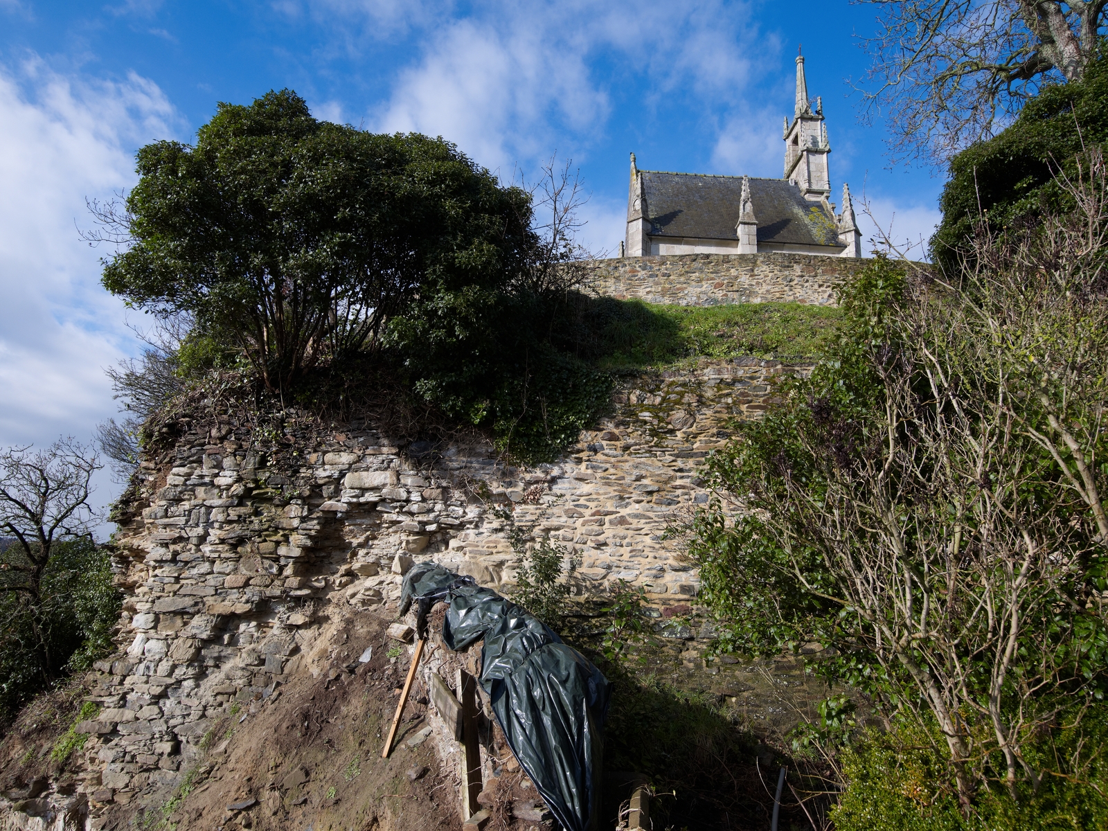 Vestige du mur d'enceinte de l'ancien château construit sur l'éperon rocheux. Vue générale sud-estImmatriculation