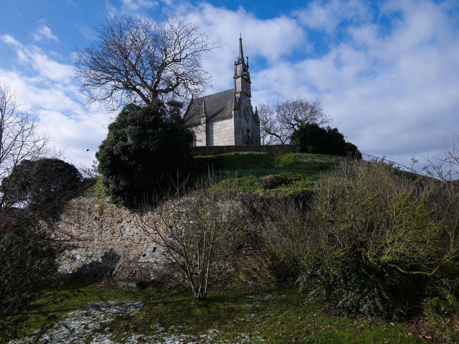Chapelle du Calvaire construite à l'emplacement de l'ancien château. Vestige de l'enceinte du château. Vue générale estImmatriculation