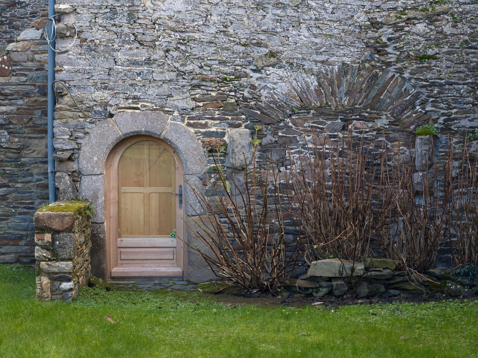 Manoir. Pignon nord. Détail de la porte et de l'arc de décharge de la cheminéeImmatriculation