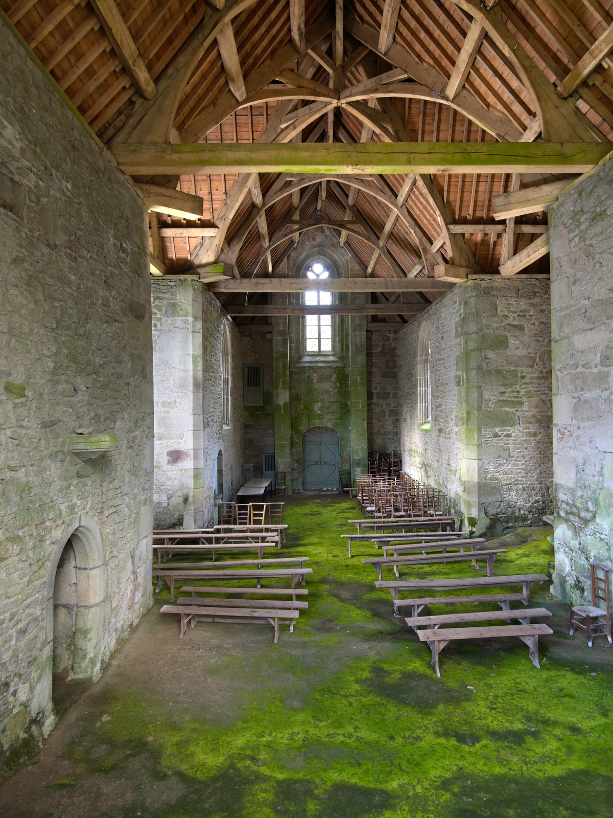 Plufur : chapelle Saint-Nicolas, vue générale de la nef. A gauche : porte de la sacristieImmatriculation