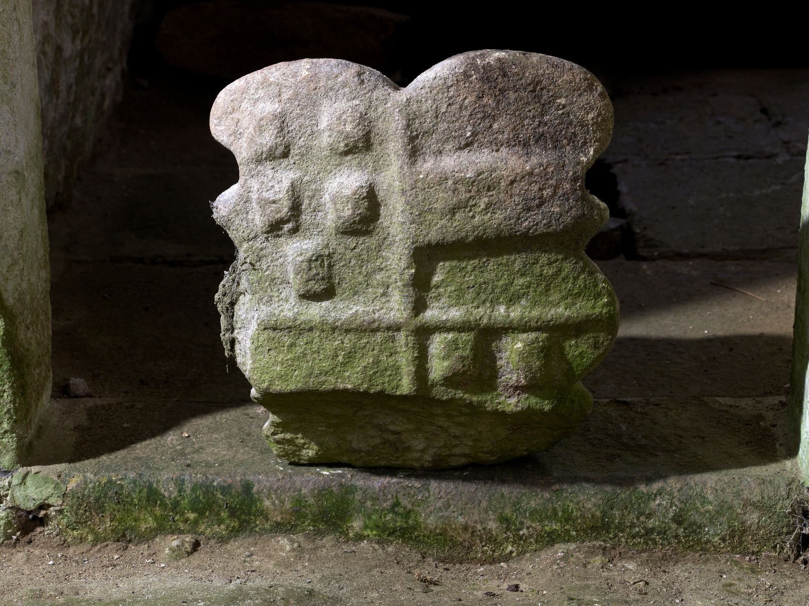 Plufur : chapelle Saint-Nicolas, vue intérieure, détail d'une pierre armoriéeImmatriculation