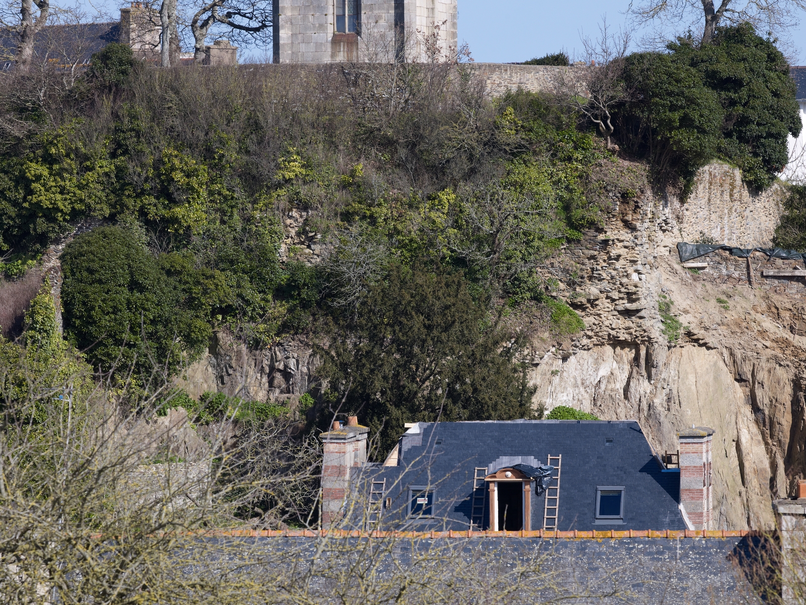 2 rue de la Rive. Eperon rocheux et vestige du mur d'enceinte de l'ancien château. Vue générale sud-ouestImmatriculation