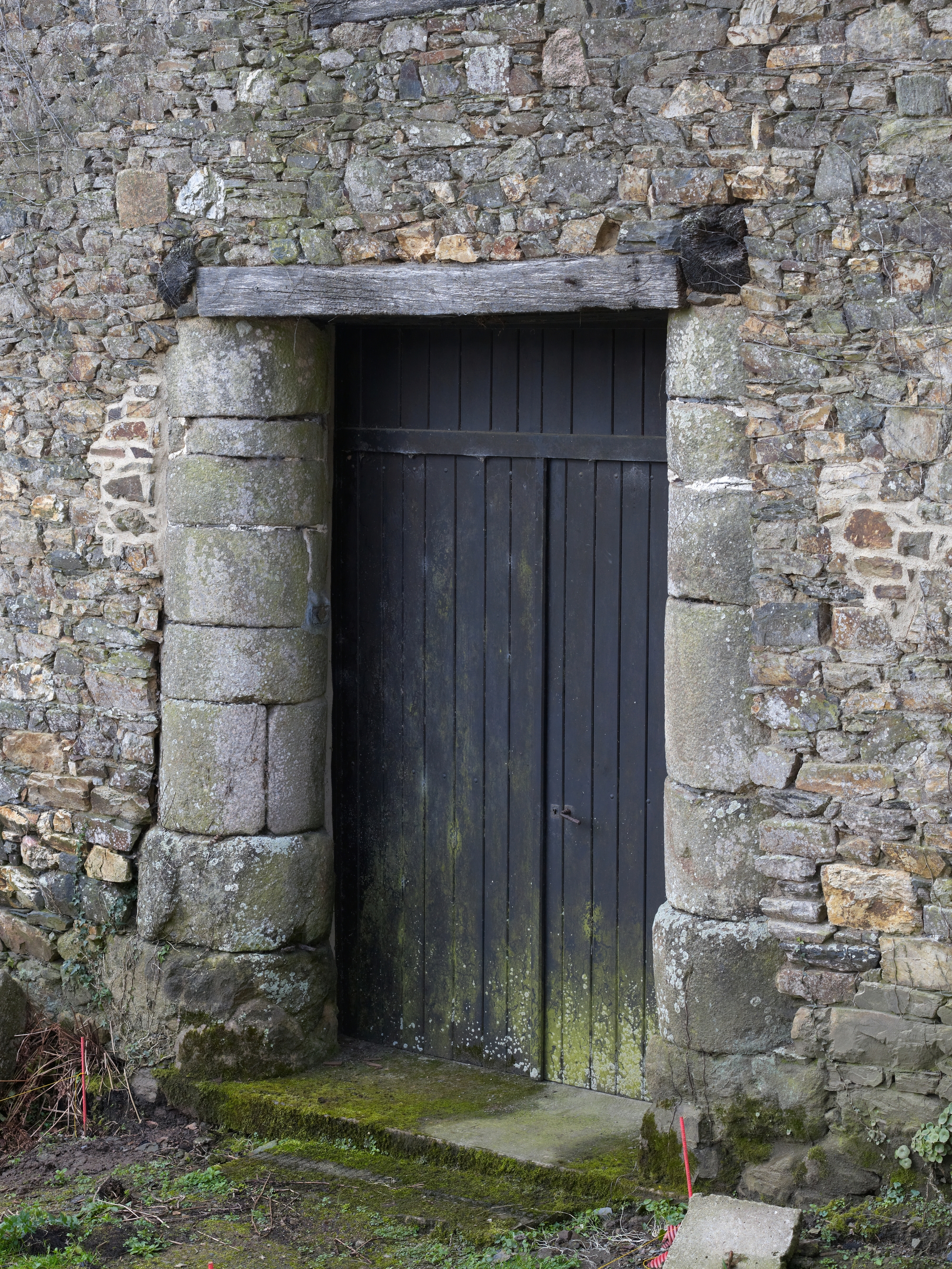 Dépendance bordant le côté nord de la cour. Détail d'une porte dont les piédroits sont réalisés avec des éléments de colonnesImmatriculation