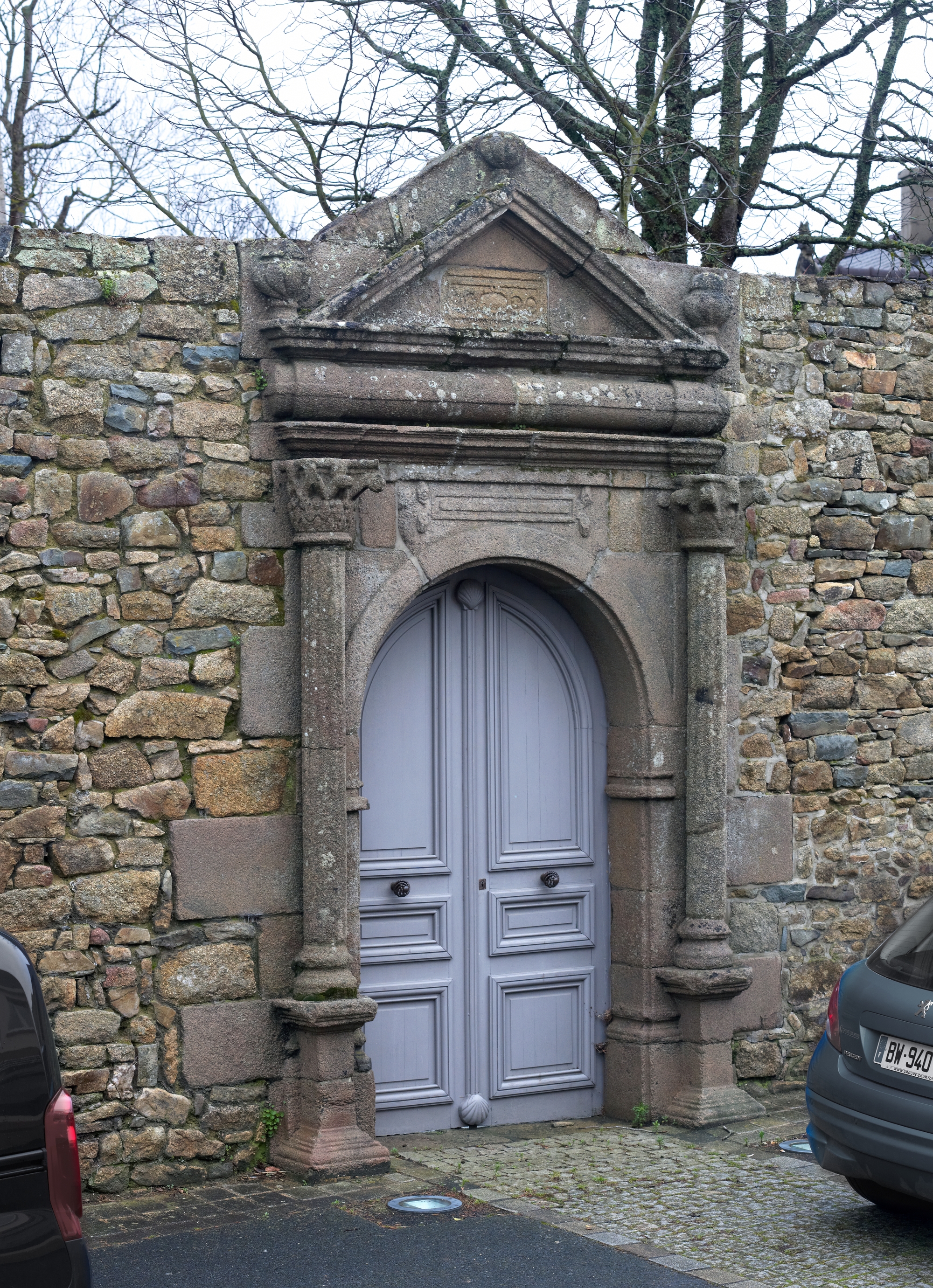 Porte du manoir de Coat Névénez, 16e siècle, remployée en 1966 dans un mur du bourg de LouannecImmatriculation