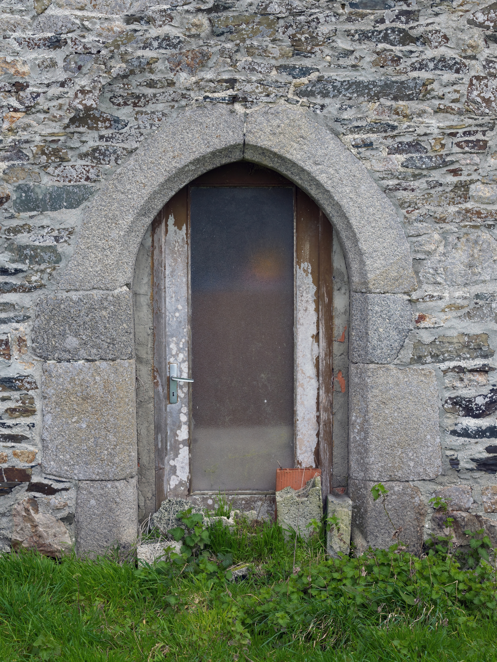 Logis. Façade nord-ouest. Détail de la porte en tiers pointImmatriculation